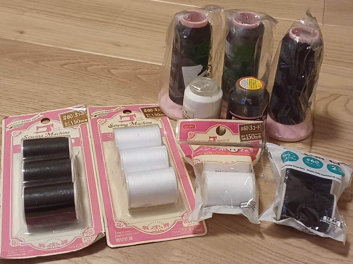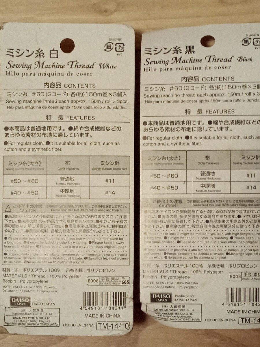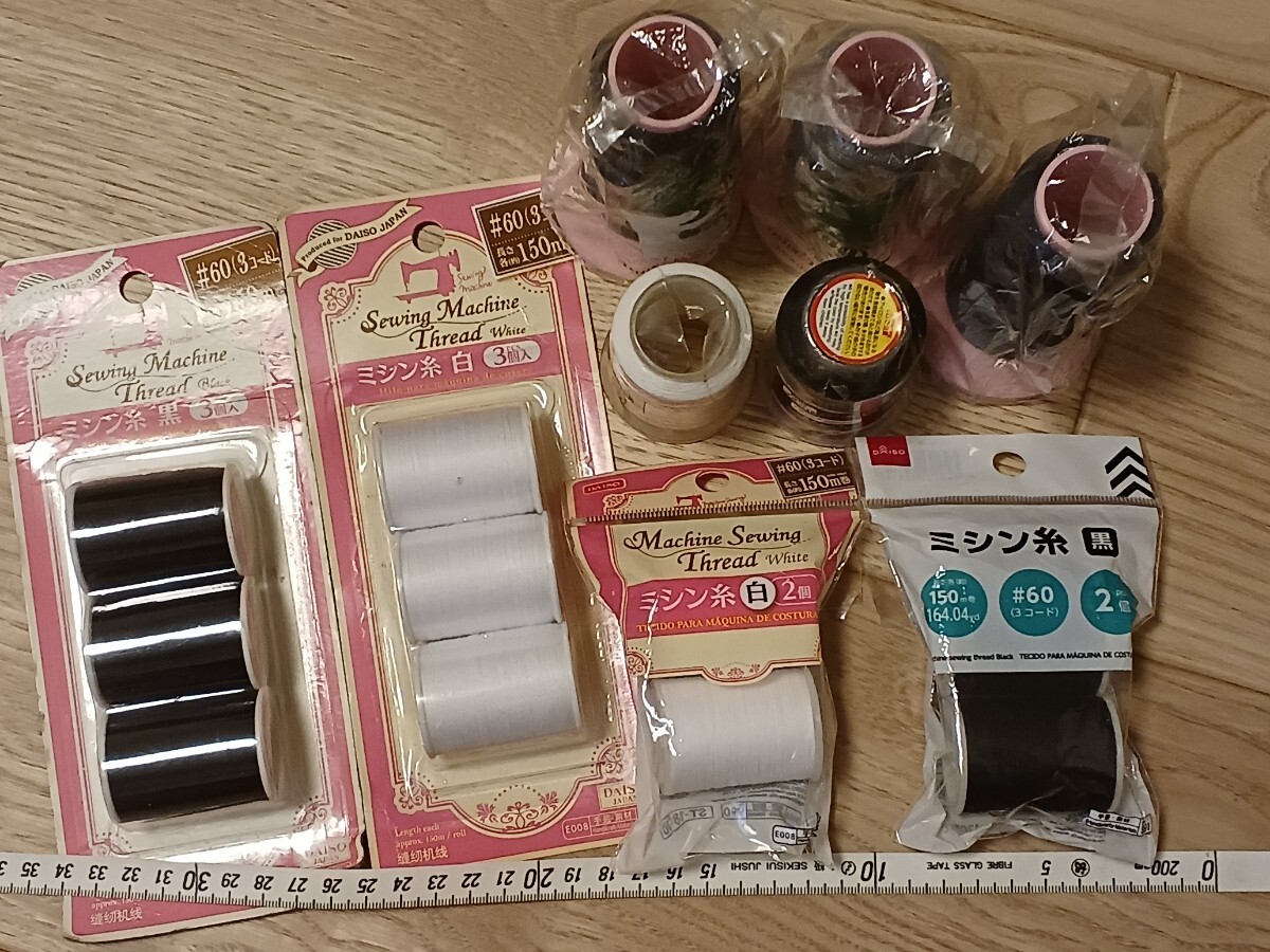 ミシン糸 白 黒 150m×6本