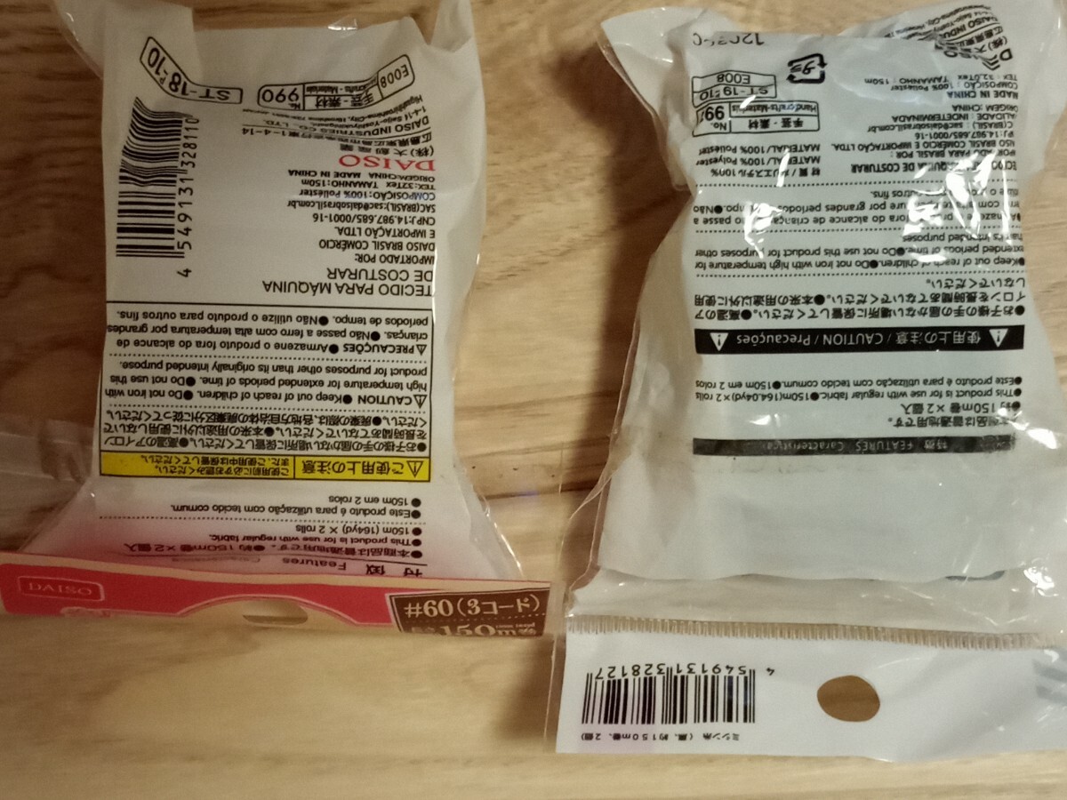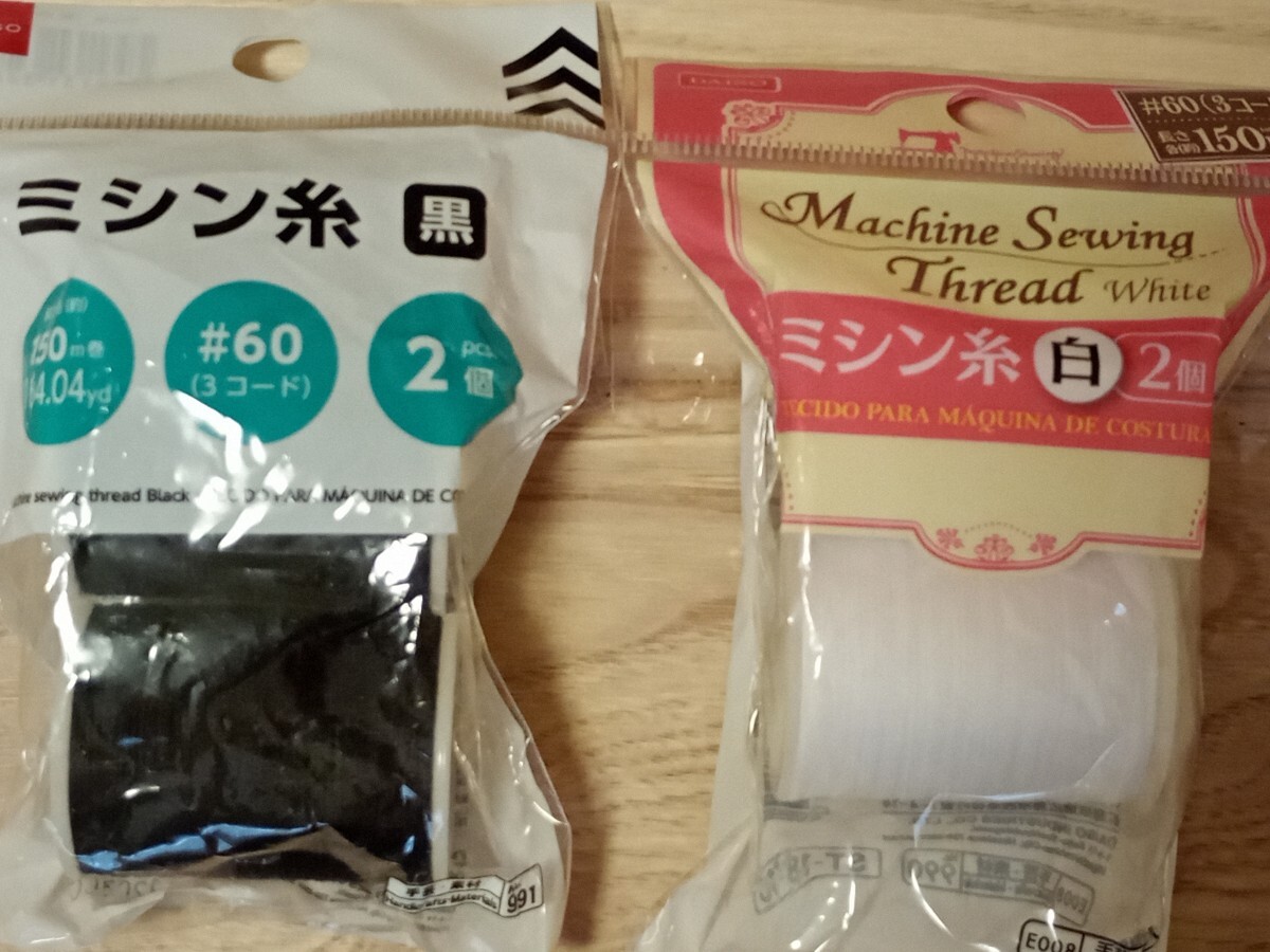 ミシン糸 白 黒 150m×4本