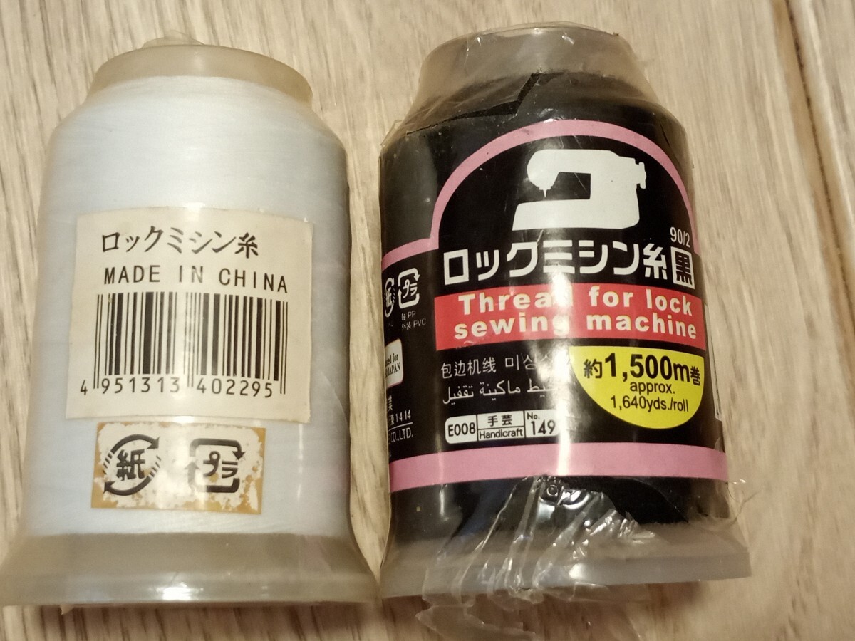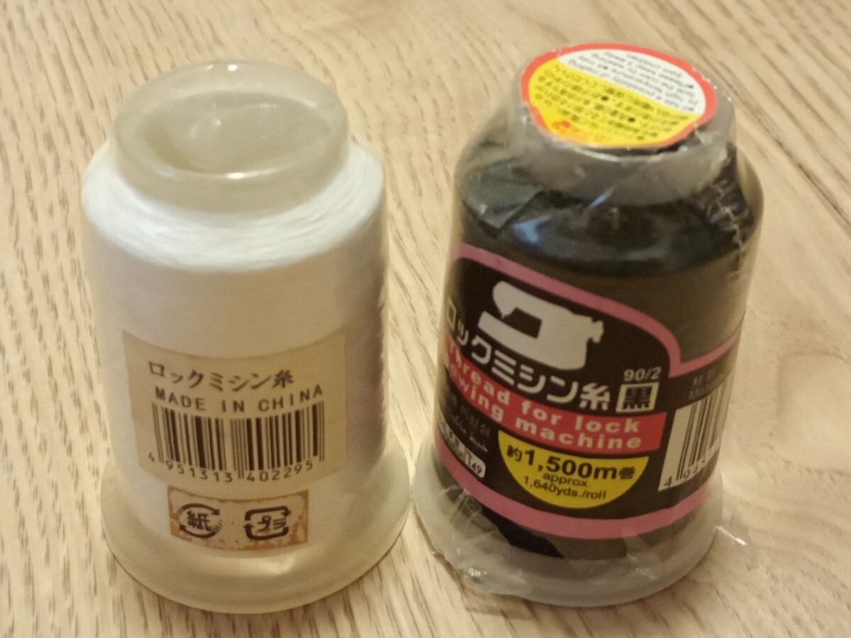 ロックミシン糸 白 黒 1500m ×2本