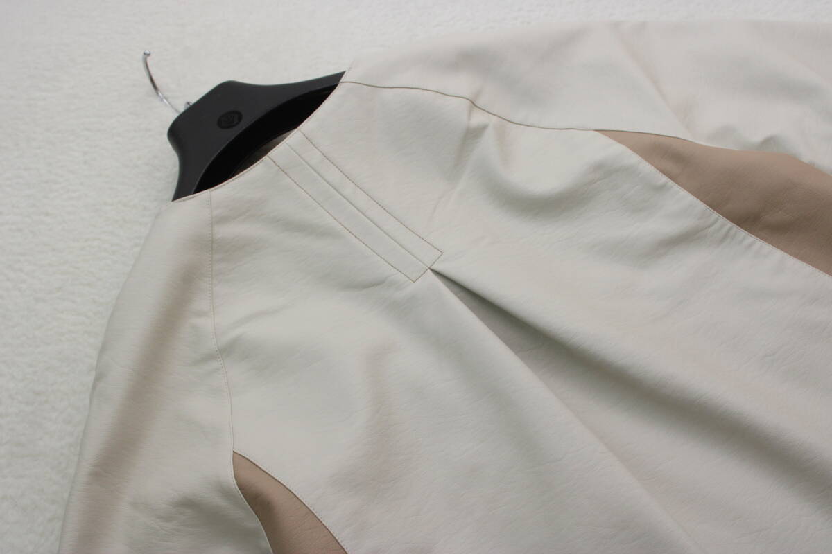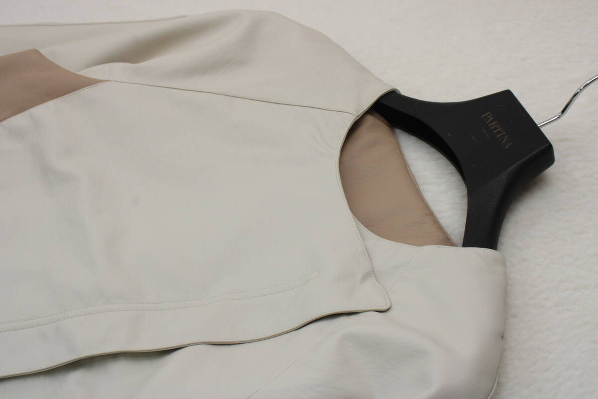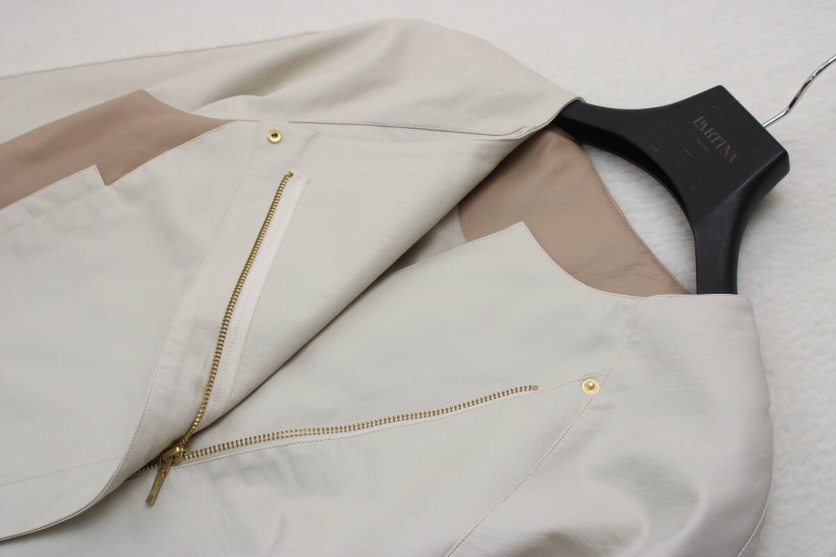 4547 新品 配色切替フェイクレザージャケット オフホワイトFサイズ