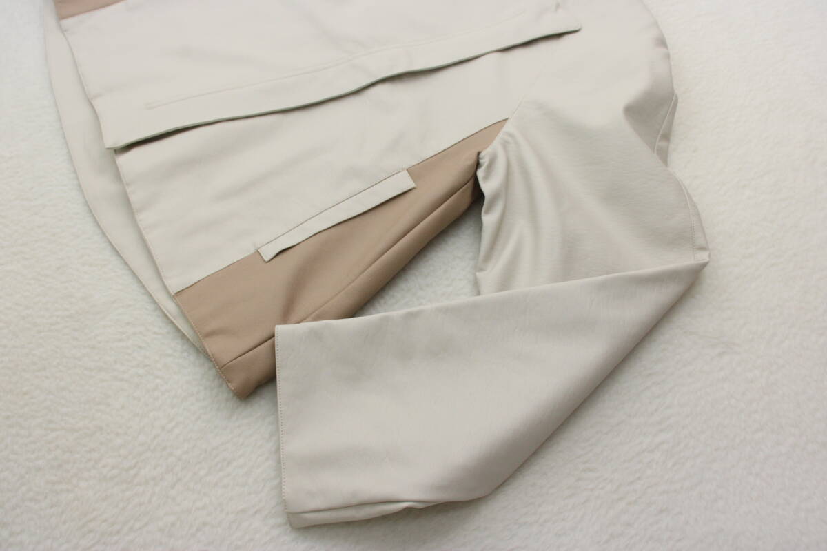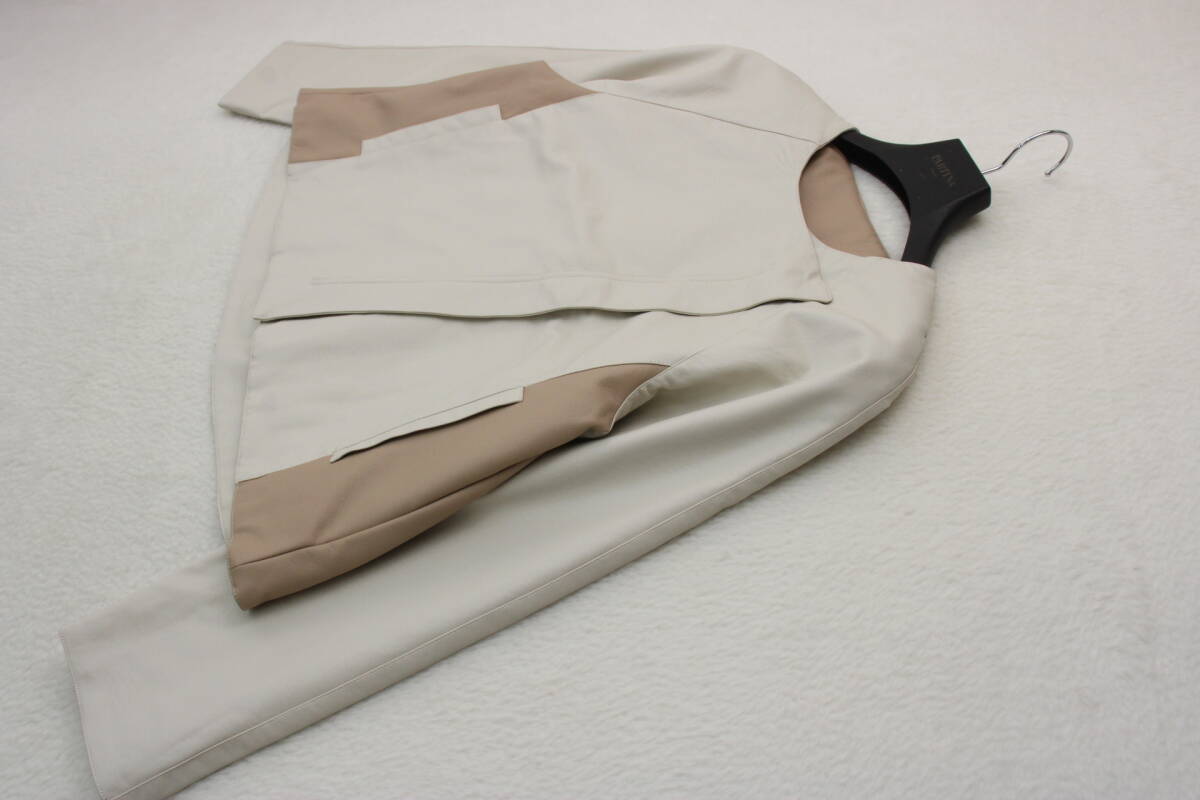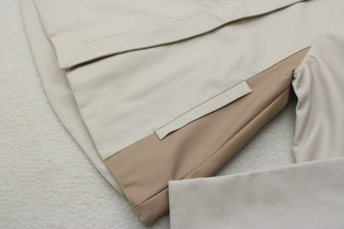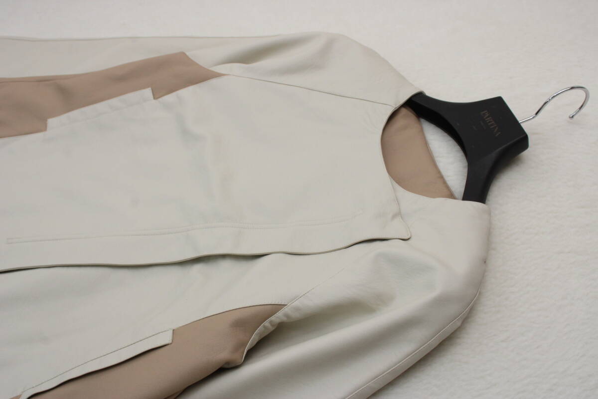 4547 新品 配色切替フェイクレザージャケット オフホワイトFサイズ
