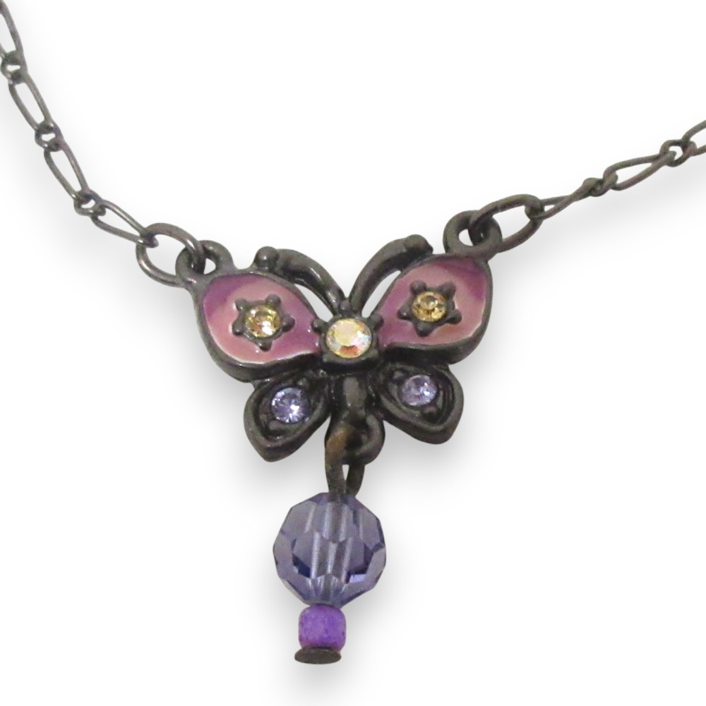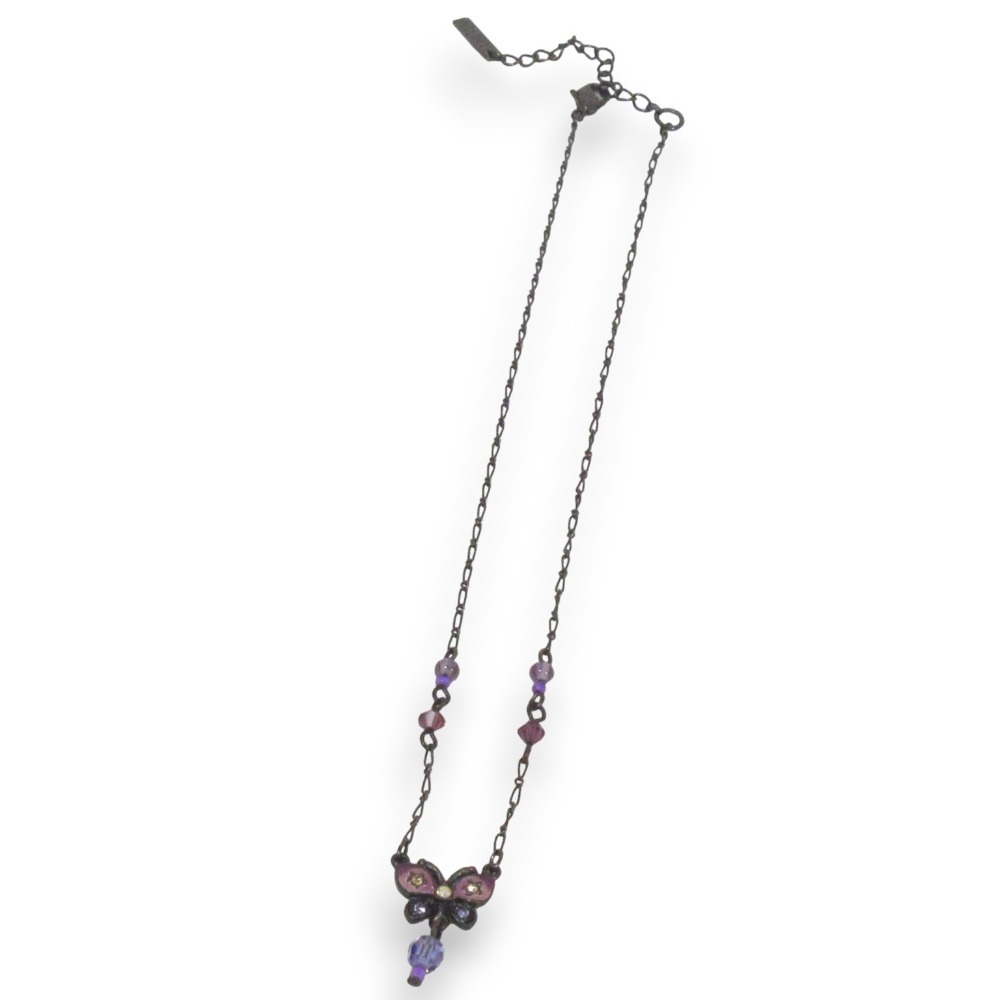 美品 ANNA SUI アナスイ バタフライモチーフ ネックレス ペンダント アクセサリー パープル×ブラウン