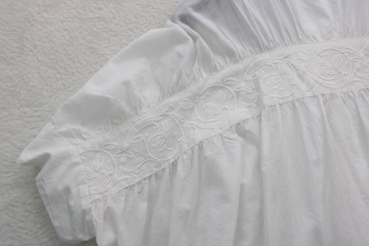 4556 新品 キャンブリックバックギャザー刺繍ブラウス ホワイトFサイズ
