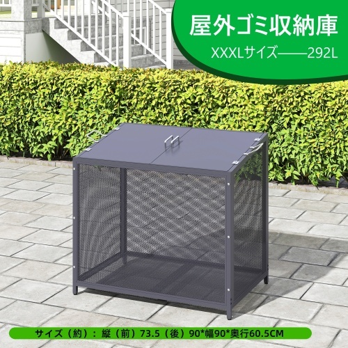 屋外ゴミ収納庫 メッシュデザイン ゴミ箱 屋外 ゴミ収集ボックス ごみ集積所 大容量 カラスよけ 野良猫対策 ゴミ荒らし防止 庭用可能 292L