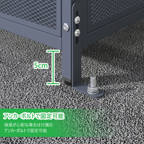 • 【アンカーボルトで固定可能】強風が心配な場合は付属のアンカーボルトで固定可能。