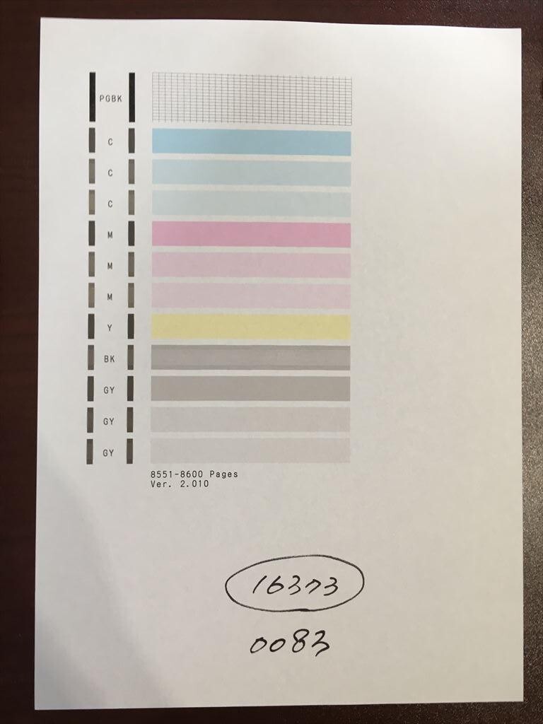 コンディションノズルチェックにて印字結果確認済みのプリンタヘッドになります。