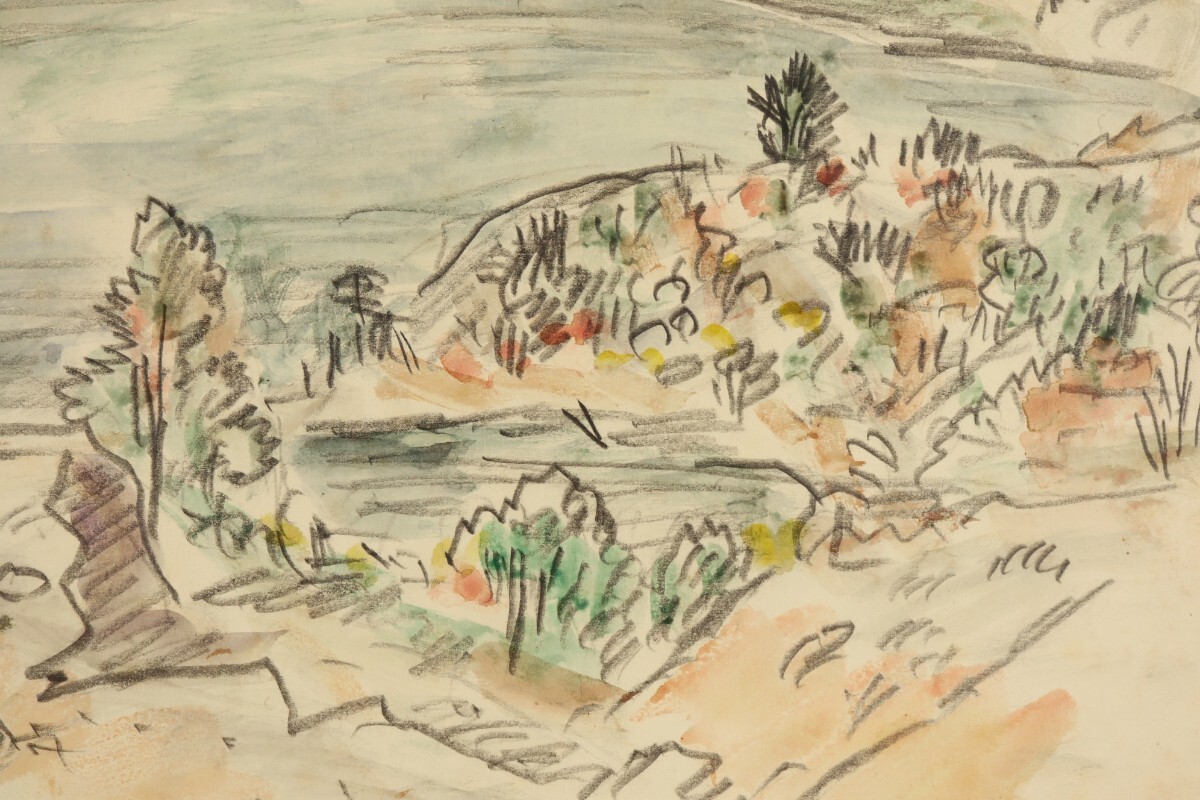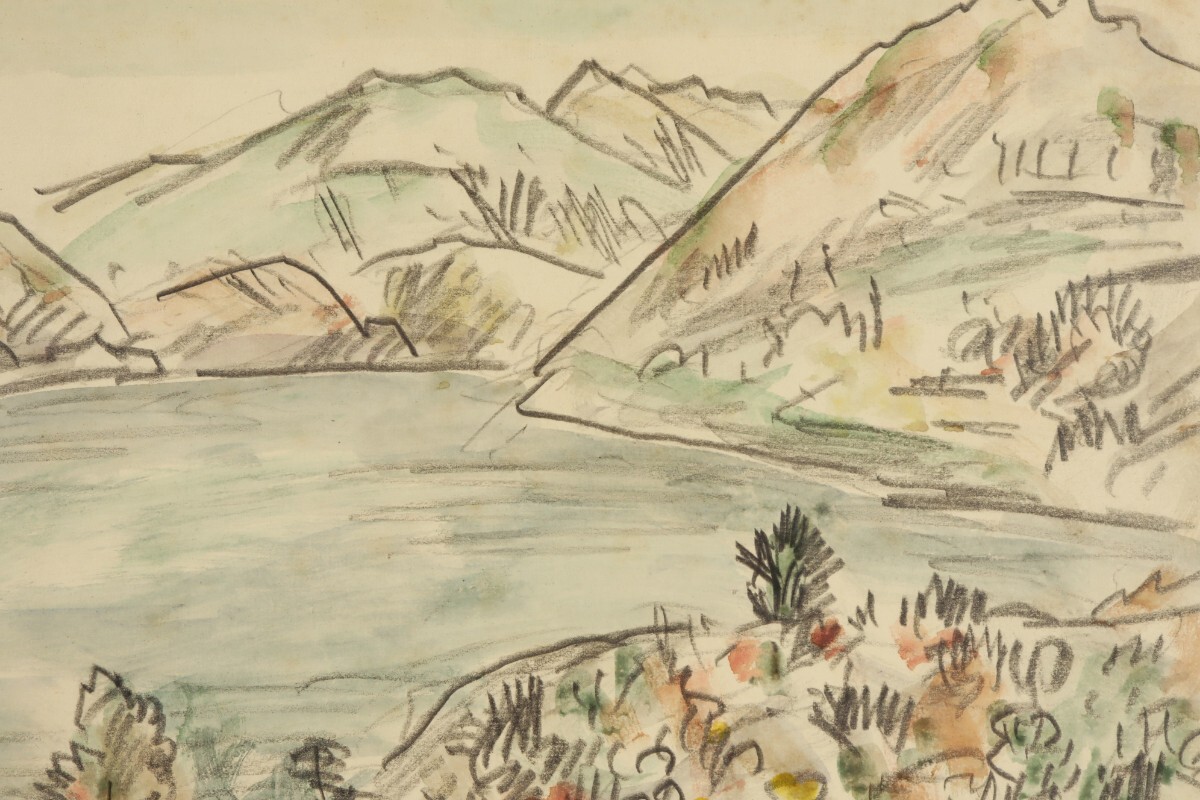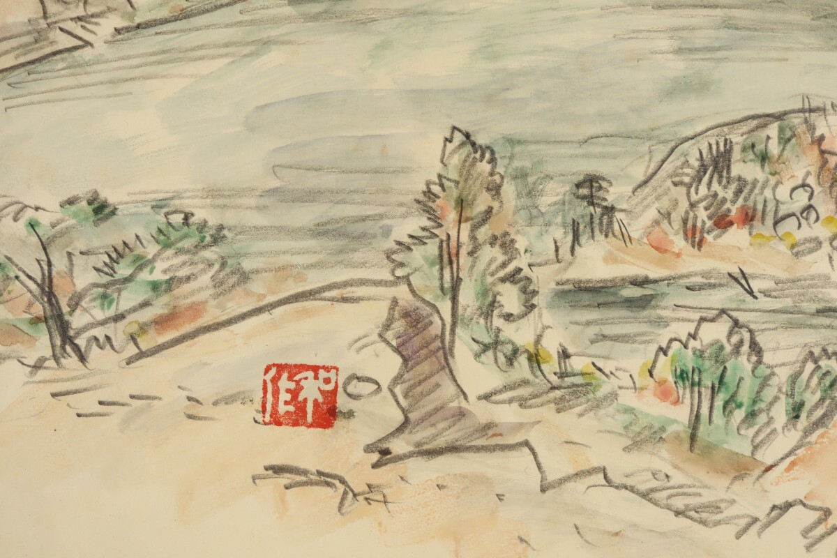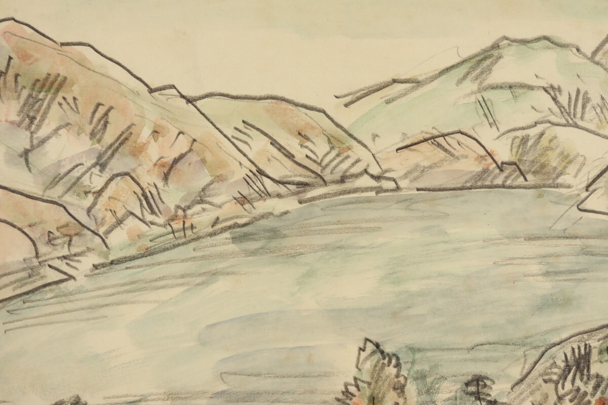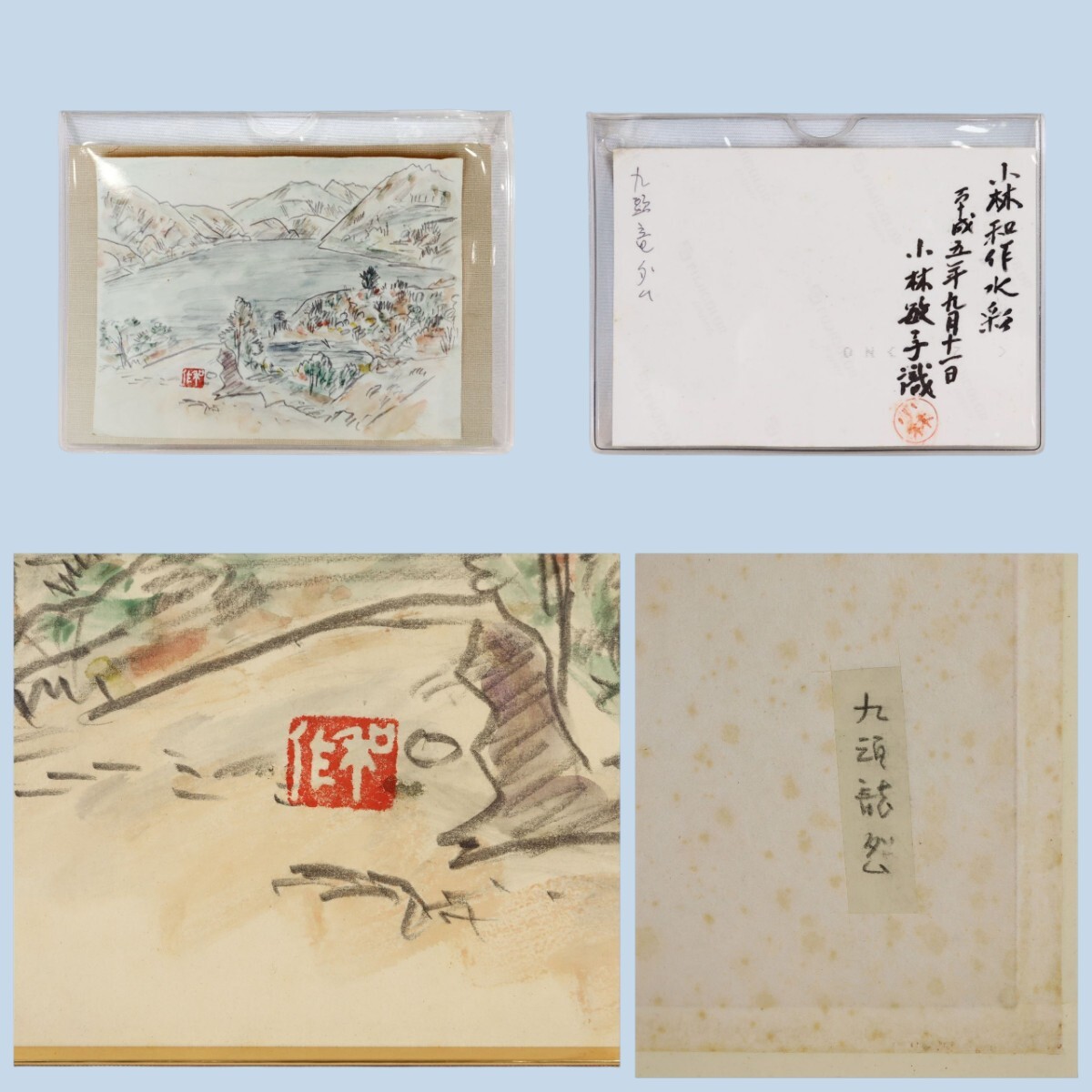真作 夫人鑑識付属 小林和作 水彩鉛筆「九頭龍ダム」窓寸 4号 山口県出身 春陽会員 福井県大野市 明るい色調と構図の美に拘り続けた 11454
