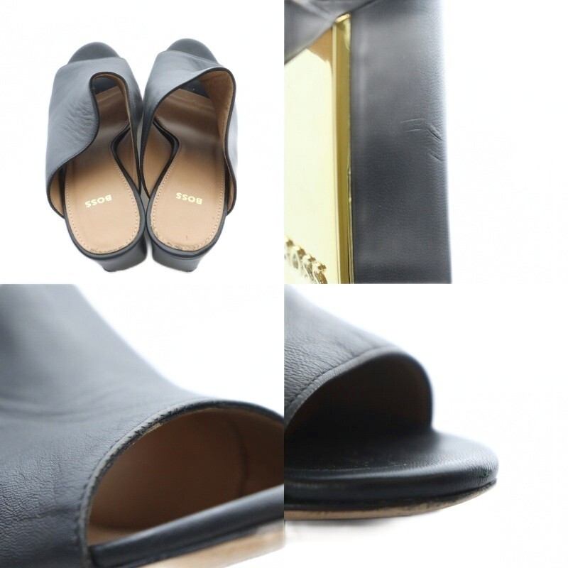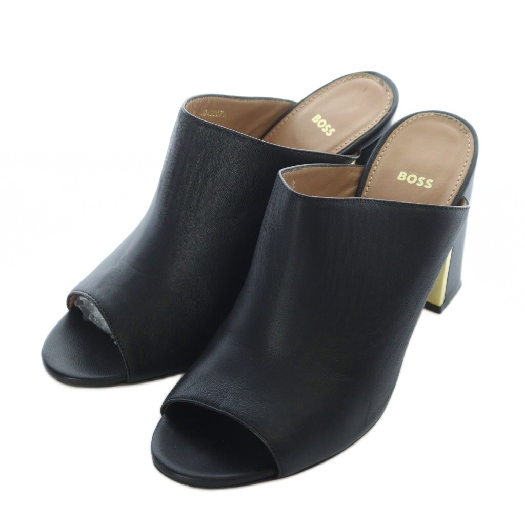 ヒューゴボス HUGO BOSS ミュール サンダル チャンキーヒール オープントゥ 38 25cm 黒 ブラック /RI ■OS レディース