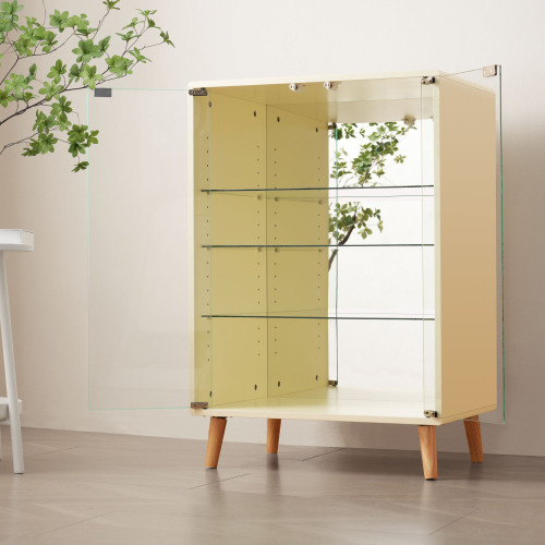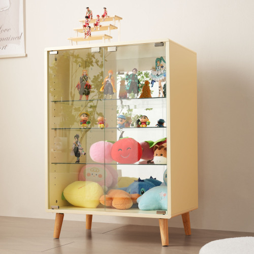 コレクションケース ワイド 大容量 コレクションシェルフ ガラスディスプレイキャビネット 4段 サイズ:幅60*奥行43*高さ88CM ベージュ