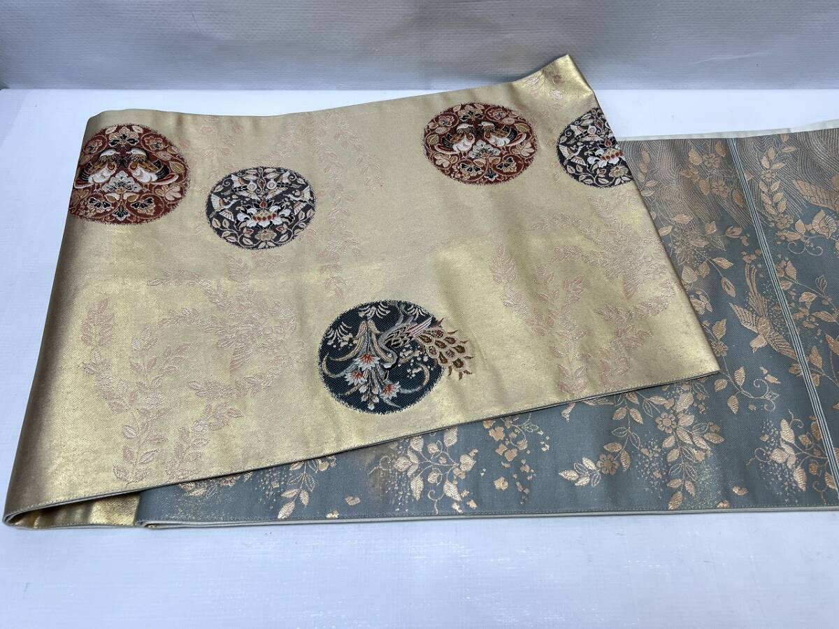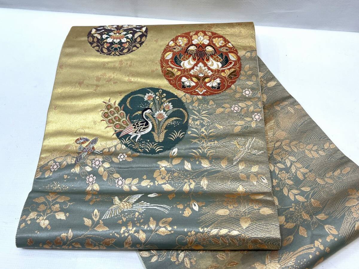 とみや織物 とみや帯 袋帯 研き出し箔 引箔袋 花鳥文様 金糸 銀糸 箱付き 着物 工芸
