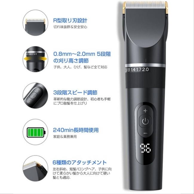 ご覧いただきありがとうございます。 商品名:バリカン 【この商品が品質で選ばれる理由】 プロの切れ味を再現する高品質なセラミック刃と低騒音設計で、ご自宅でのセルフカットも安心です。 ■こんな悩みありませんか? ・美容院に行く時間がない、予約が面倒くさい ・散髪代を節約したい ・自宅で手軽にセルフカットしたいけど、うまくできるか不安 ★こんな時におすすめ! ・お子様のヘアカットを自宅でしたい時 ・家族みんなで使えるヘアカット用品を探している時 ・いつでも手軽に身だしなみを整えたい時 -------------------------------------------- 【機能性】 ・IPX7級の防水設計で、本体は丸ごと水洗いできます。 ・お風呂でも使用できて便利です。 ・1500mAhの大容量バッテリーを搭載し、コードレスでどこでも使用できます。 ・USB充電式なので持ち運びにも便利です。 ・LEDディスプレイで、バッテリー残量や作動状態が一目でわかります。 【使いやすさ】 ・良質なステンレスとセラミックの刃で、切れ味が非常に良く、サビの心配もありません。 ・3段階のスピード調節機能があり、初心者の方でも簡単に扱えます。 ・6種類のアタッチメントと本体のダイヤルで、5段階の刈り高さ調節が可能です。 ご不明な点などございましたら お気軽に「質問する」からお問い合わせください。 |
