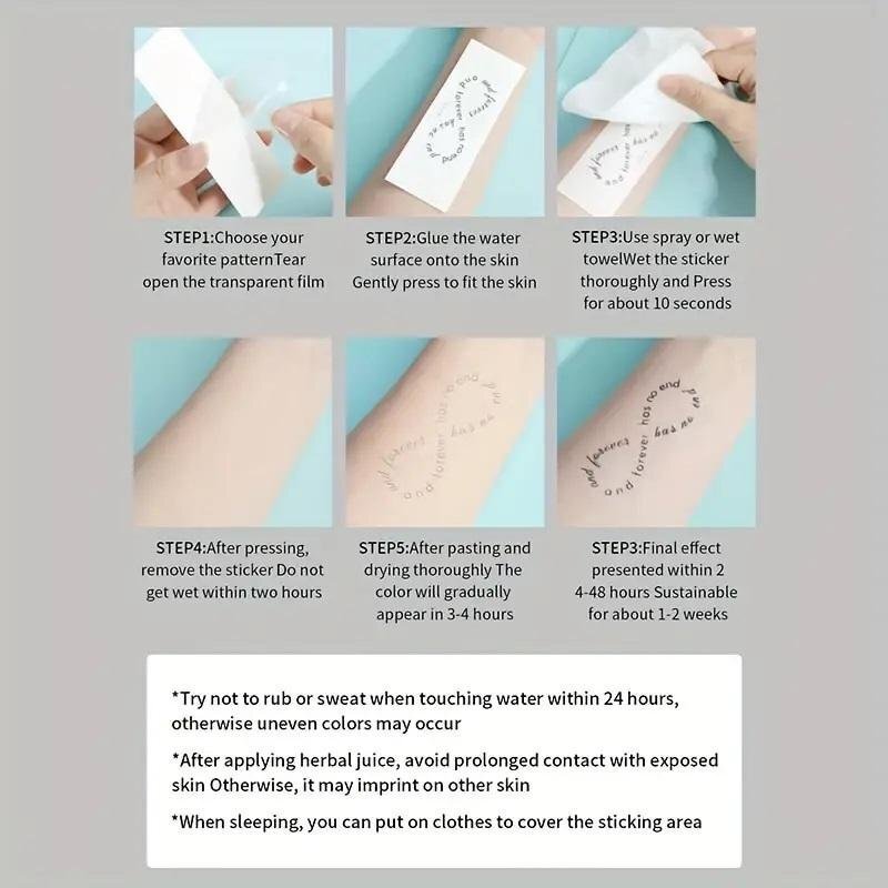 | 台紙サイズ 約 17cm×24cm ※敏感肌、目の近く、または接着剤にアレルギーがある場合は使用しないでください。 【使用方法】 ●透明フィルムを剥がし、スプレーまたは濡れタオルでステッカーをしっかりと濡らして下さい。 ●10秒間、肌に密着させ、ステッカーを剥がします。その後約2時間濡らさないで下さい。 ●約、6時間後に発色開始→約24~48時間程度で完全発色します。 ●約1~2週間持続します。 【貼る時のコツ】 シートそのままの大きさだと曲げ辛く密着しにくい為、余白部分を切ってから貼るのがコツです。 ※商品画像の色味は画面でみた場合と実際は多少の色差が生じる場合がございます。 ※海外製品のため入荷時点でしわや折れ目が付いている場合がございますが、ご使用には問題ございませんので予めご了承ください。