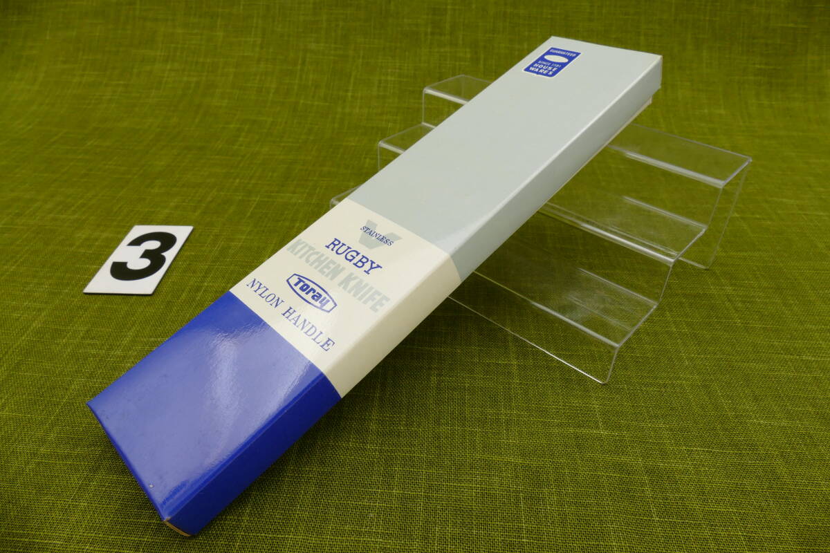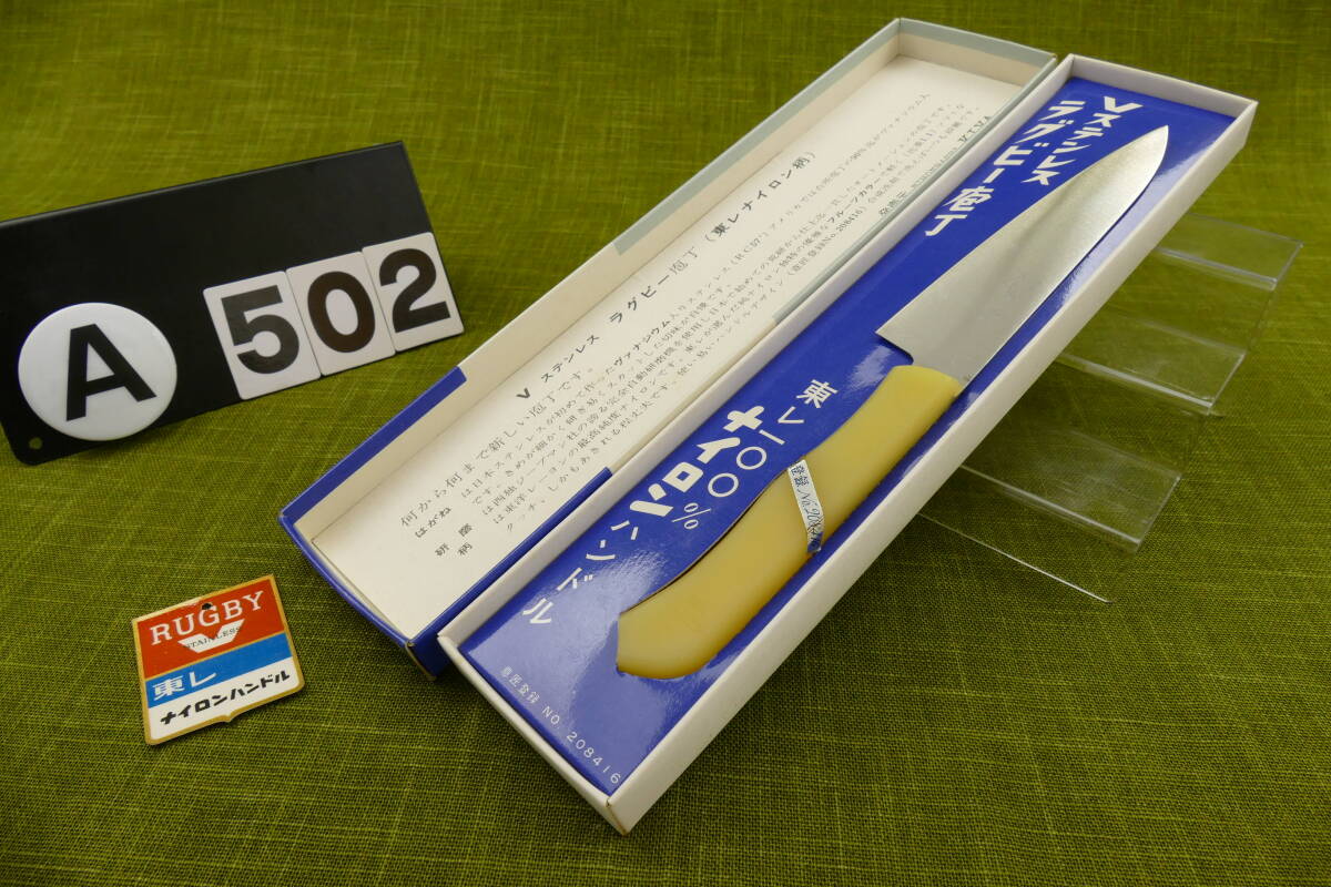 【A502】 レトロ品 日本橋 木屋 RUGBY Vステンレス ラグビー 包丁 東レ100%ナイロンハンドル 新品ですが長期保管品
