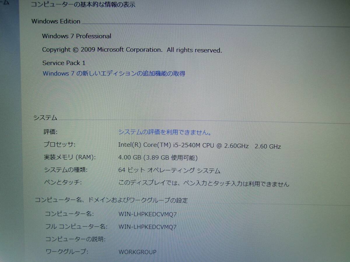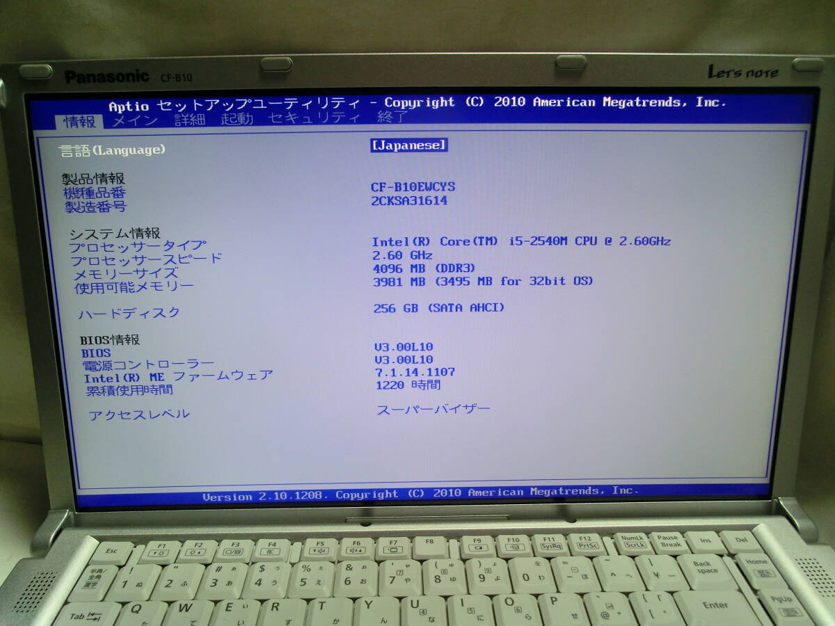 【中古】Panasonic Let's note CF-B10EWCYS(動作確認済)/Intel Core i5-2540M/メモリ4GB/256GB SSD/Windows7 Pro/管:NPC2508-844