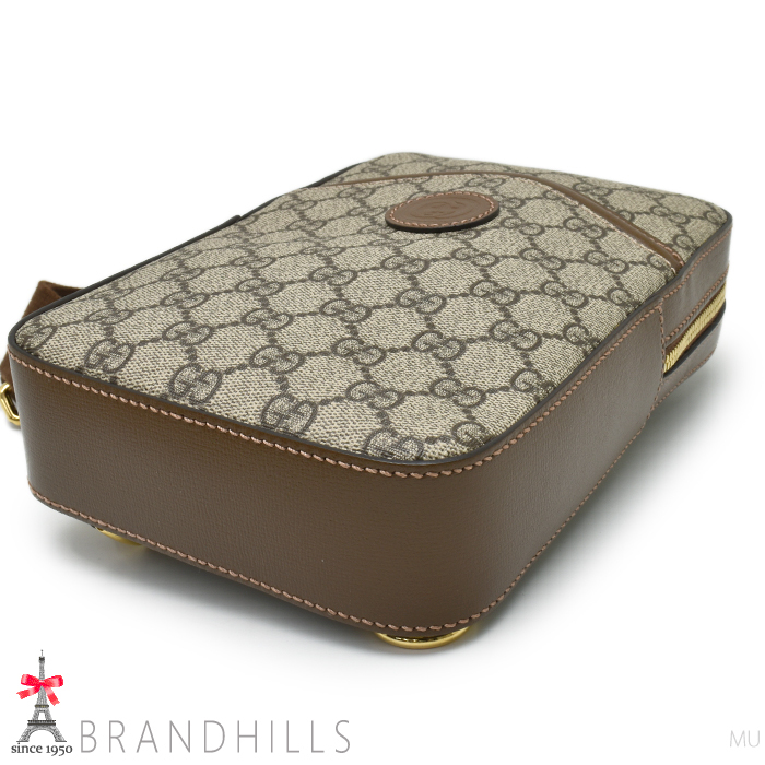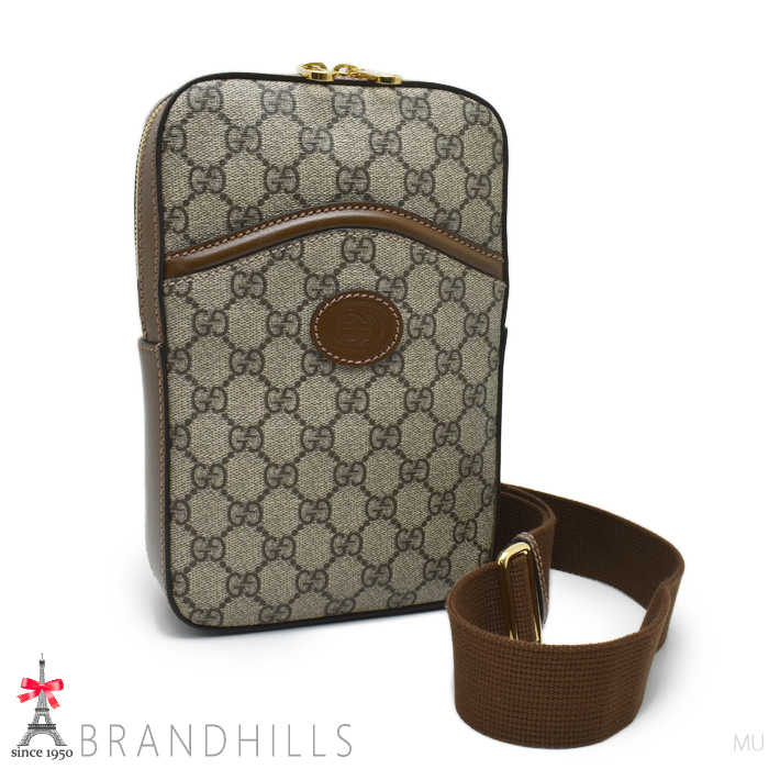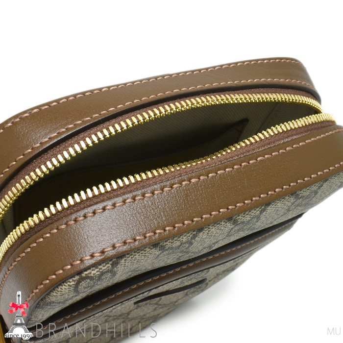 グッチ ボディバッグ GGスプリーム レザー ベージュ エボニー インターロッキングG 696016 GUCCI ほぼ未使用