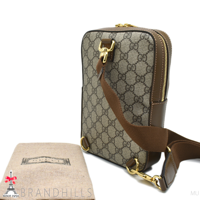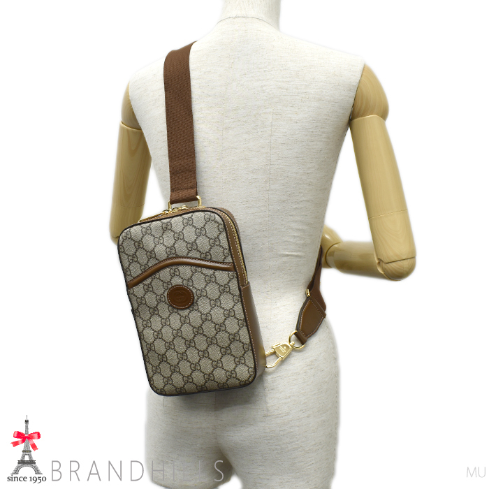 商品名グッチ ボディバッグ メンズ レディース GGスプリーム レザー ベージュ エボニー インターロッキングG