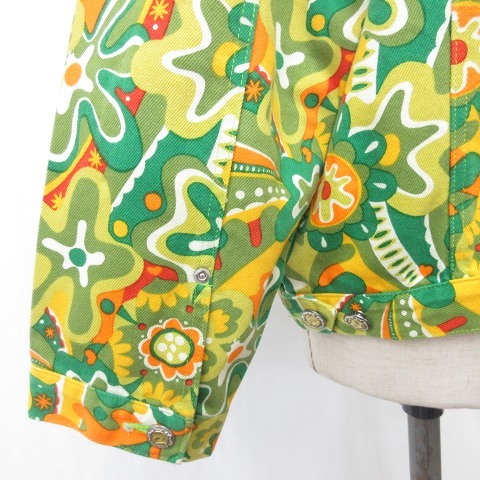 ブティックニコル boutique NICOLE ジャケット ヴィンテージ 総柄 サイケ柄 ワッペン チャーム 綿 緑 黄 オレンジ   レディース