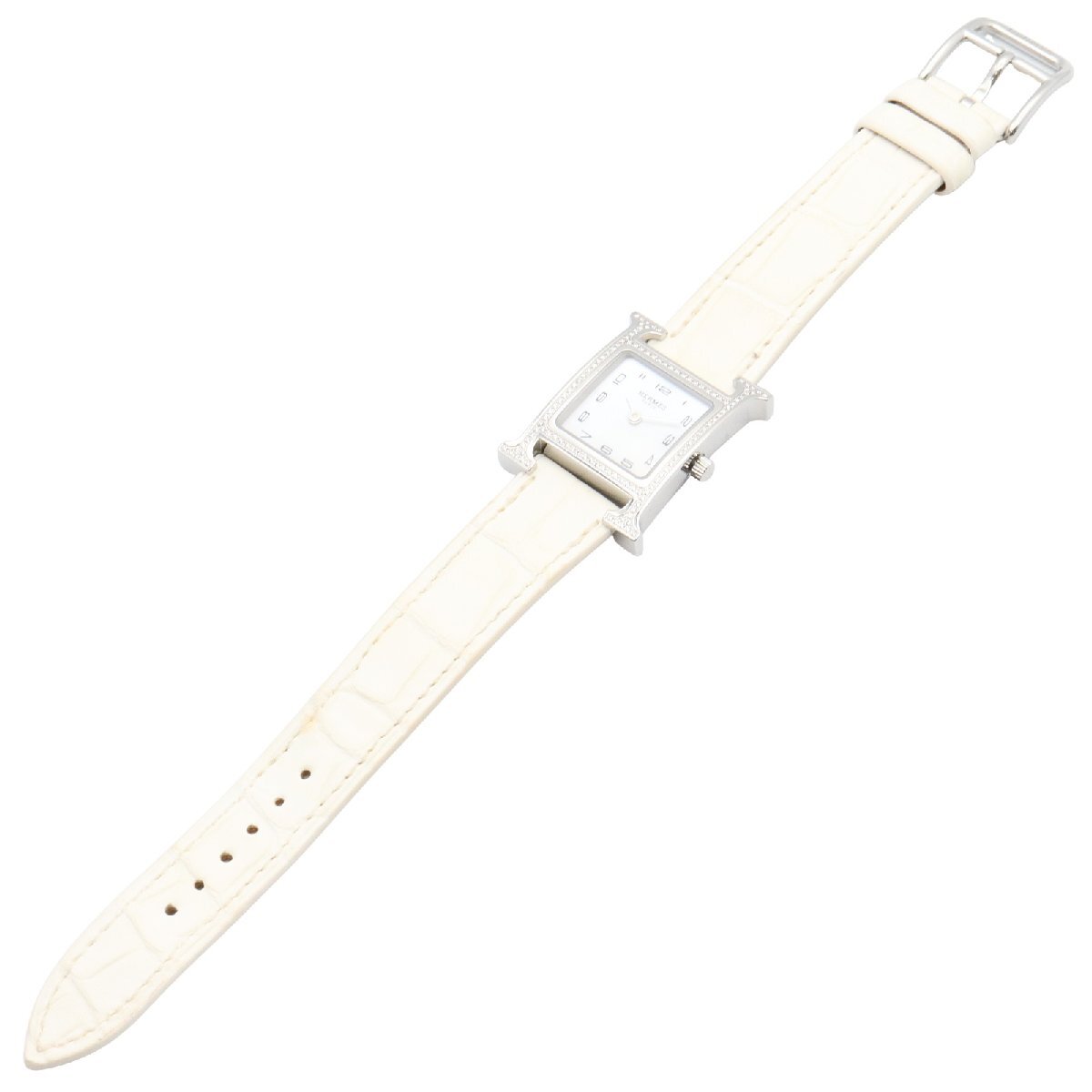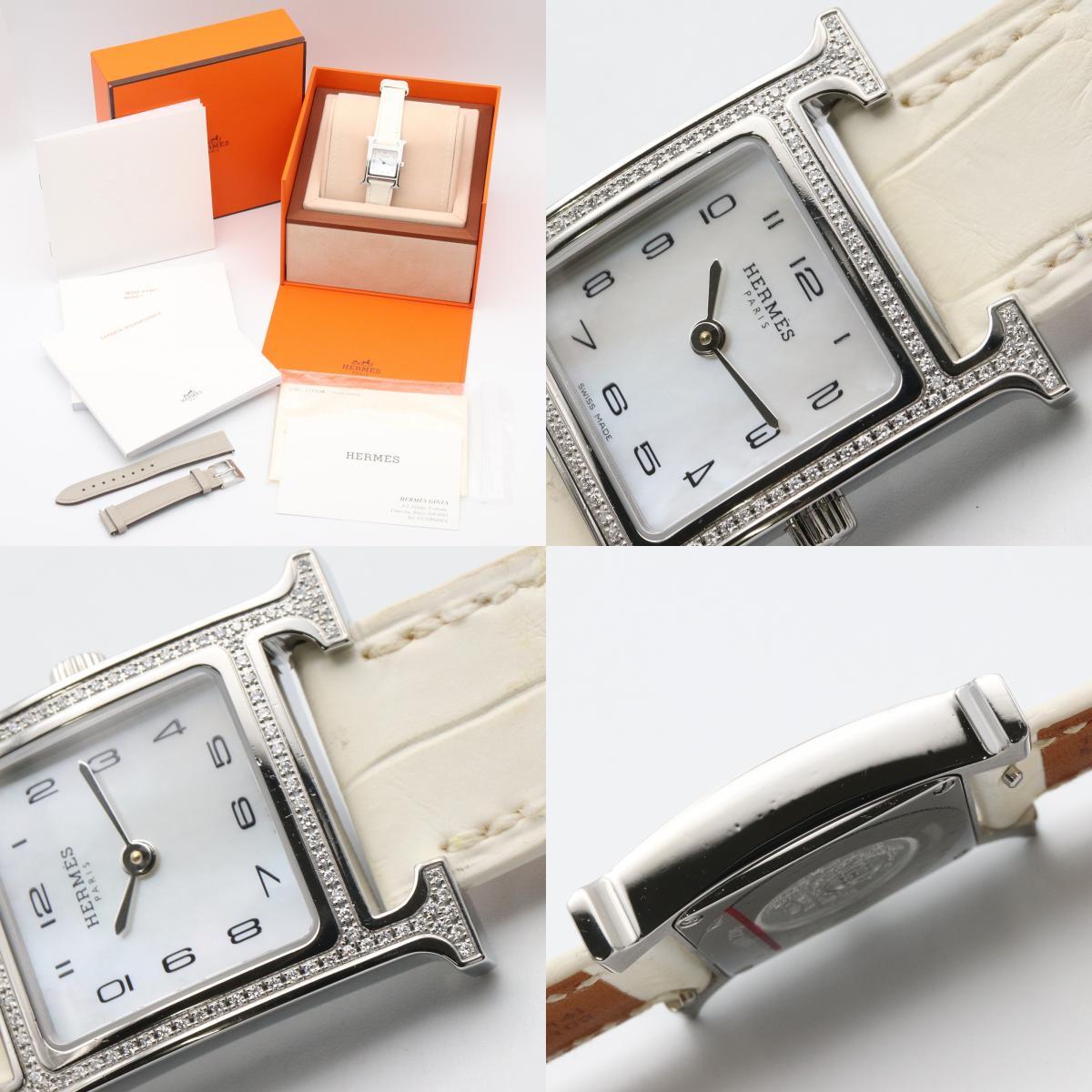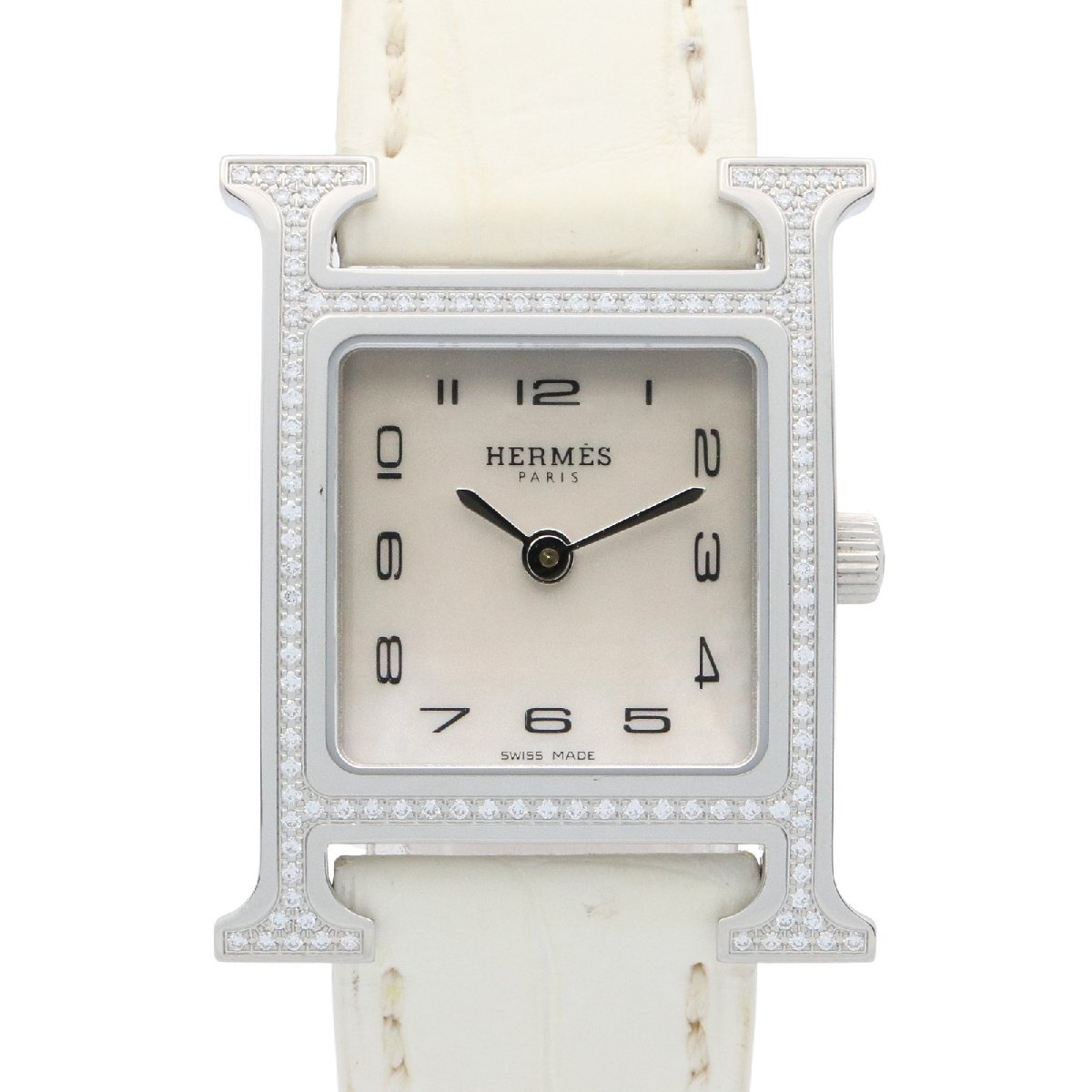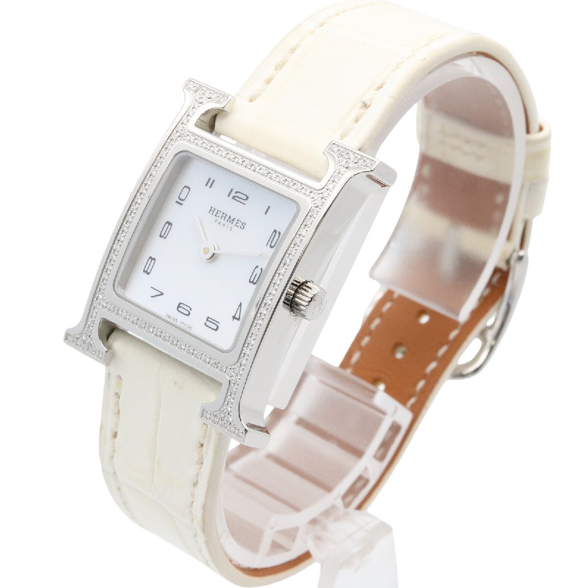 エルメス Hウォッチ ダイヤベゼル ブランドオフ HERMES ステンレススチール 腕時計 SS/クロコ革 中古 レディー