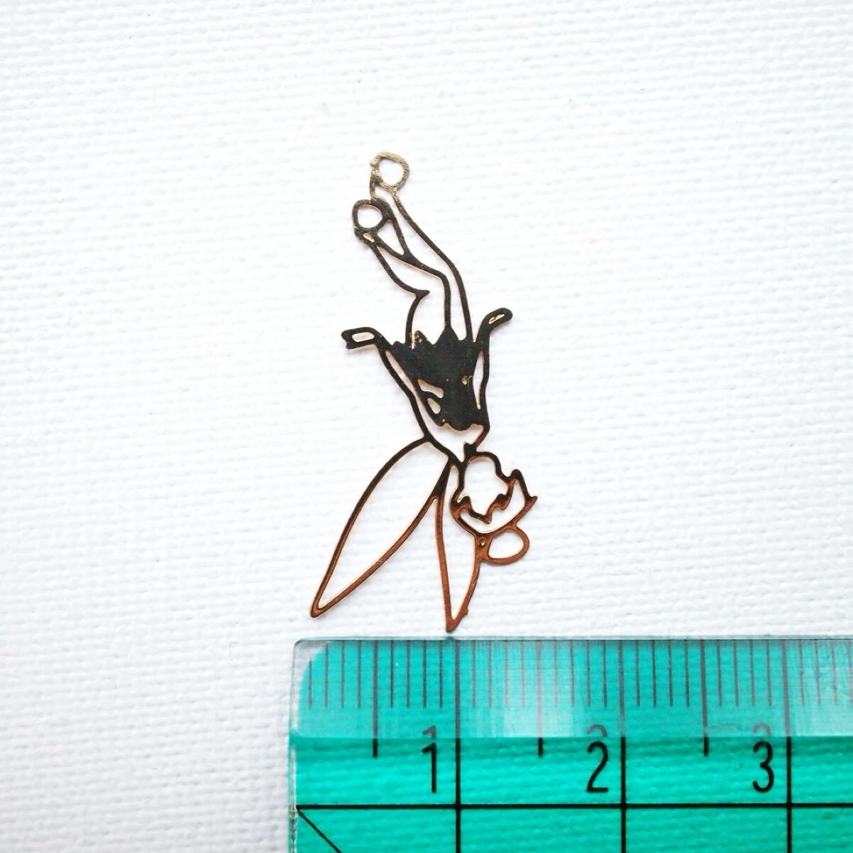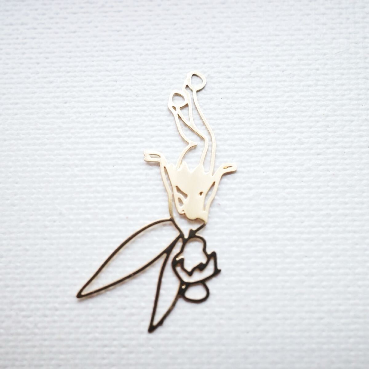 | 金属製の素材(ゴールドカラー)のチャームです。 とても薄くて軽くて繊細で素敵な素材です♪ タテ3㎝×ヨコ1.5㎝ ※他のモノとのおまとめ発送で送料一括でお送りきますのでよかったら他もご覧ください | |||