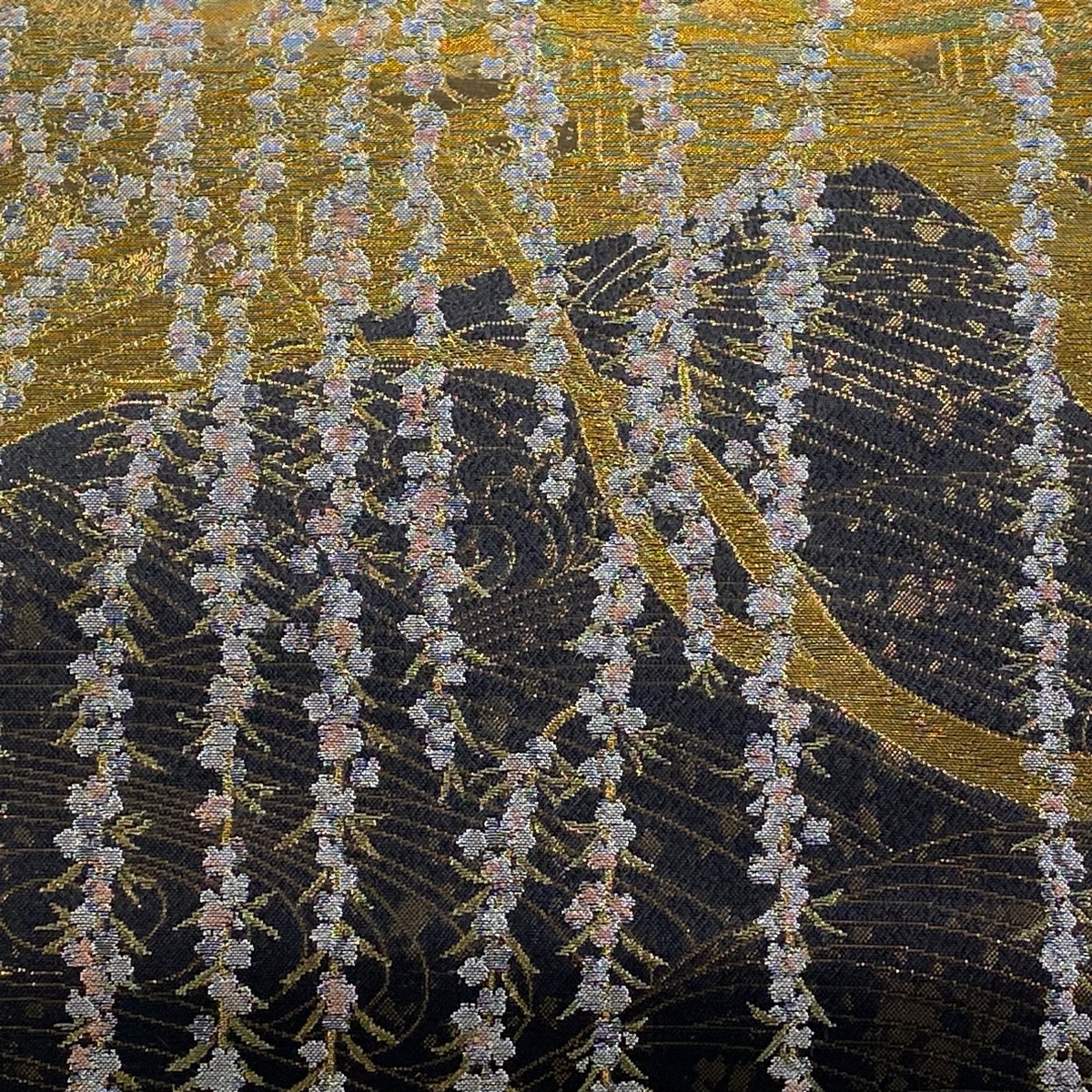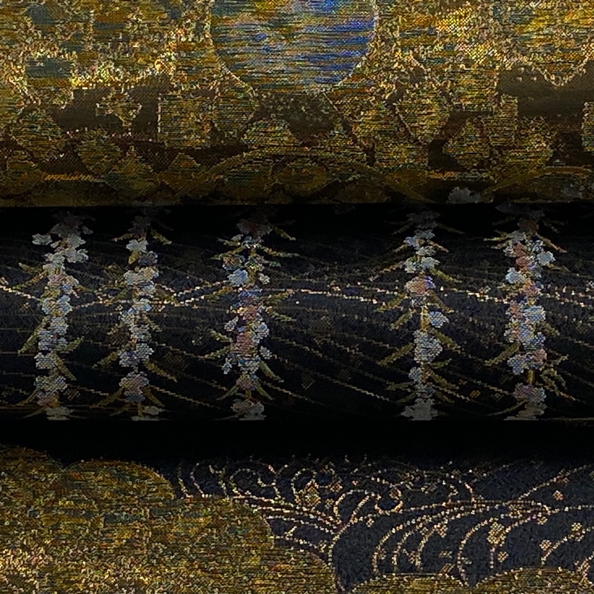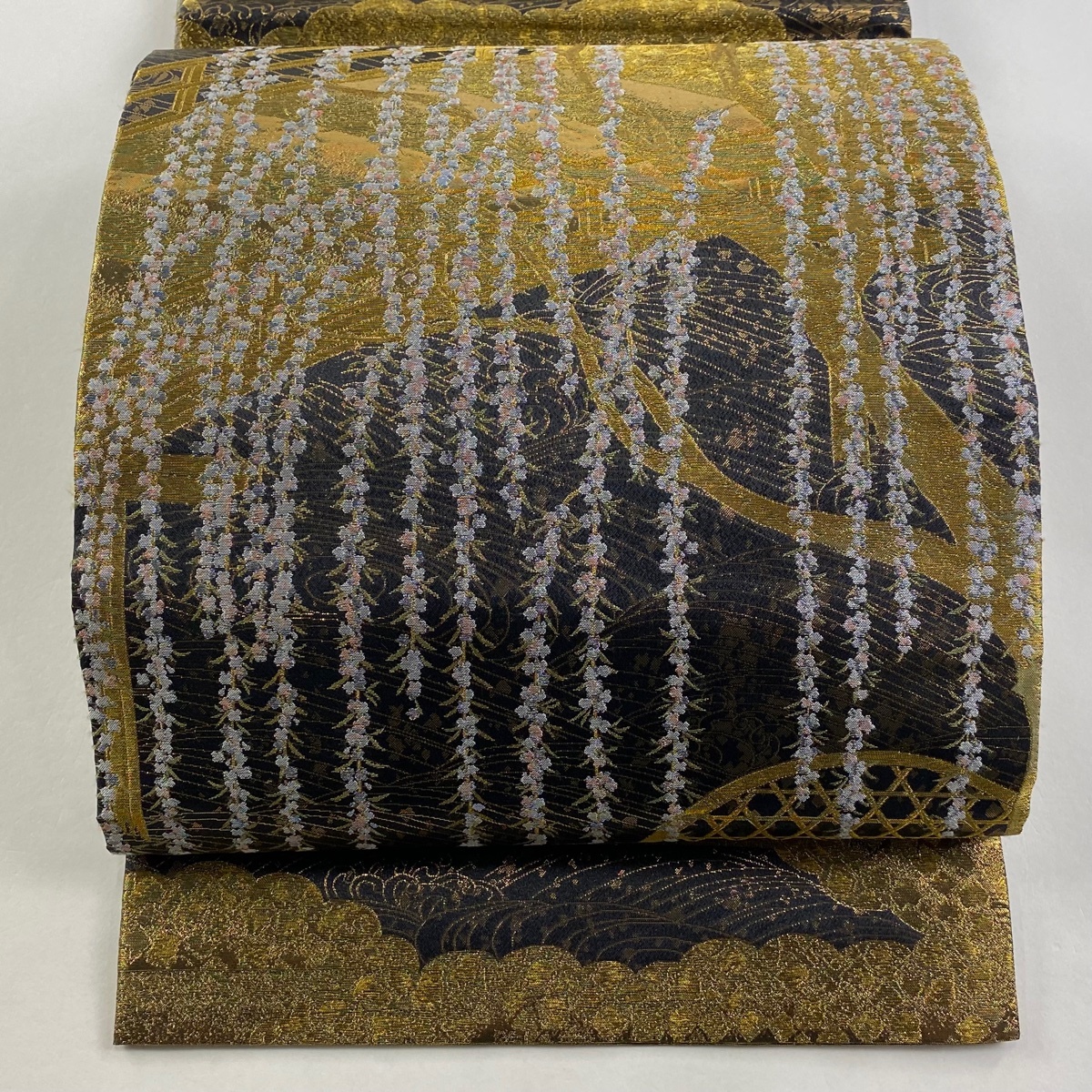 丸帯 美品 逸品 桃山百双屏風文 橋 金糸 箔 墨色 お太鼓柄 正絹 【中古】 |