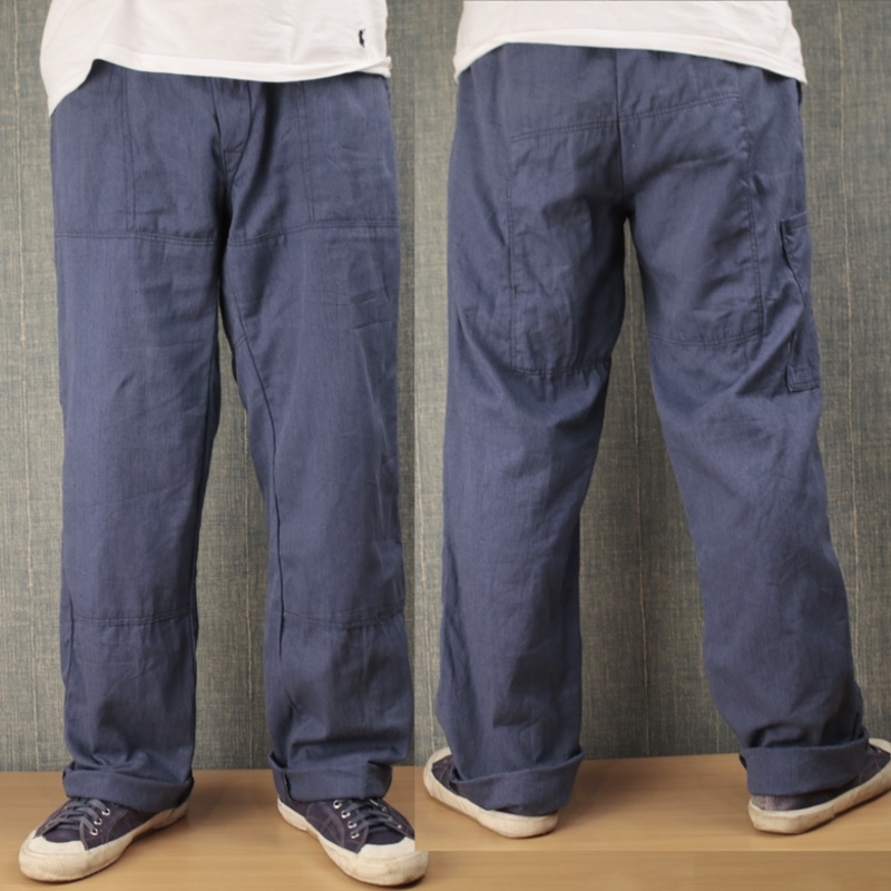 フロントダブルニー、後ろ側、お尻から内もものダブルですが、ダック地のようなヘビーな生地ではなく、薄いので、暑い夏でも問題ないです。