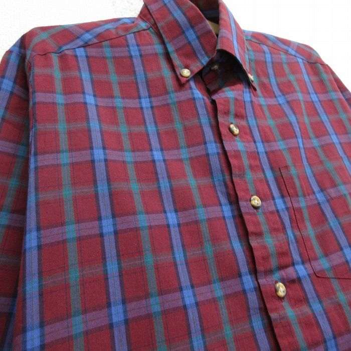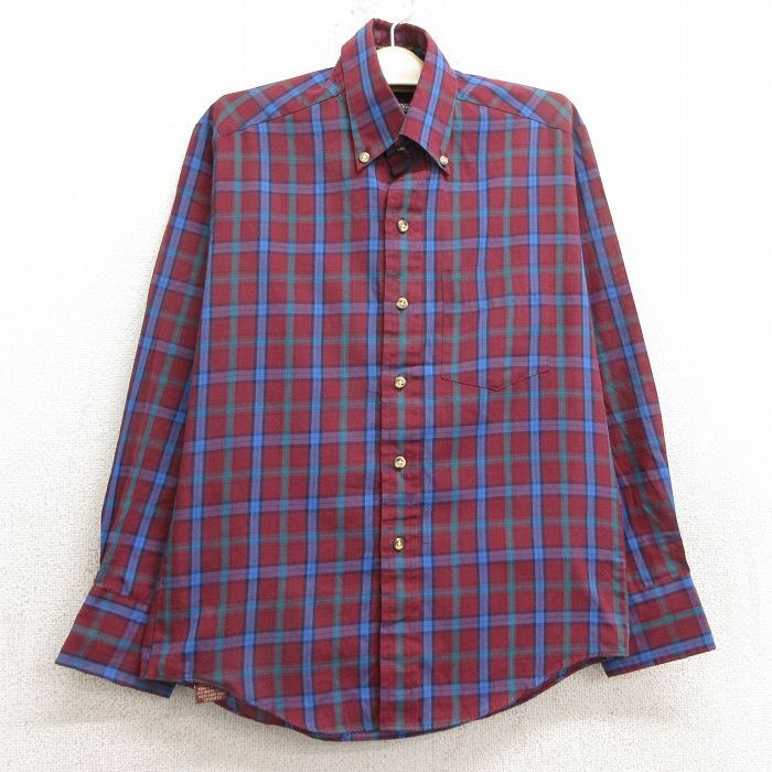 【商品名】 古着 長袖 シャツ キッズ ボーイズ 子供服 80年代 80s ボタンダウン エンジ他 チェック