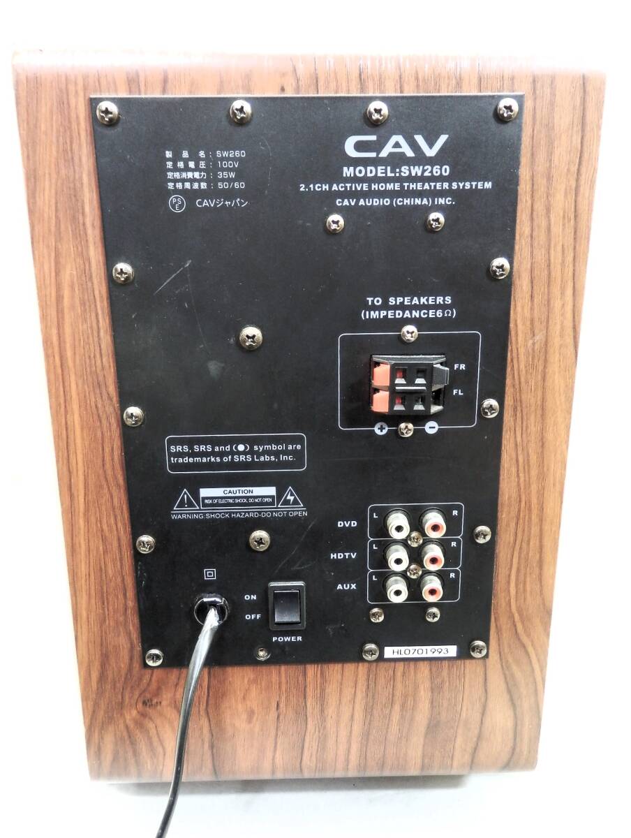 商品名 | CAV SW260 2.1ch ホームシアターシステム アンプ内蔵サブウーファー 本体のみ 約6250g 現状品 売り切り |