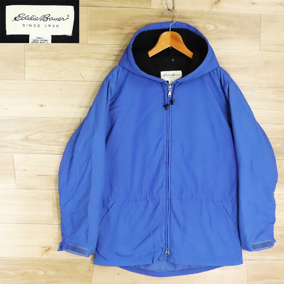 G2T/D8.18-2 アメリカ古着 Eddie Bauer エディーバウアー ナイロンジャケット ジップアップフーディー ジャンパー ブルー L