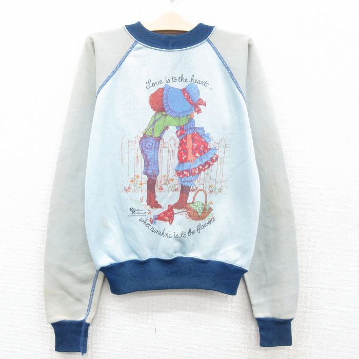 【商品名】 古着 Petticoats and Pantaloons 長袖 スウェット キッズ ボーイズ 子供服 80年代 80s 女の子 ツートンカラー ラグラン クルーネック USA製 薄紺他