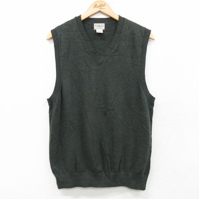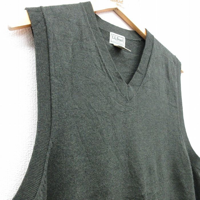 【商品名】 M★古着 エルエルビーン ニット ベスト メンズ 00年代 00s 無地 Vネック 濃緑 霜降り