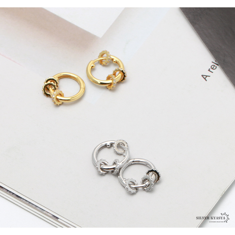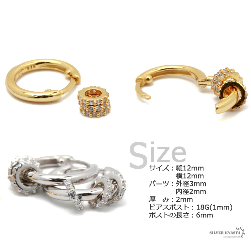 パーツ付のフープピアス。キュービックジルコニアがついた小さな輪っか部分は、取り外しが可能で気分に合わせて使い分けができます。
