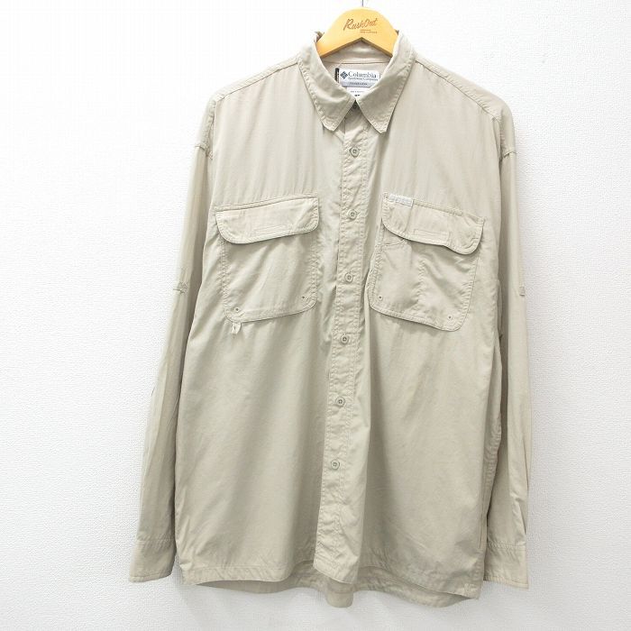 【商品名】 XL★古着 コロンビア 長袖 フィッシング シャツ メンズ GRT 薄ベージュ 内側メッシュ