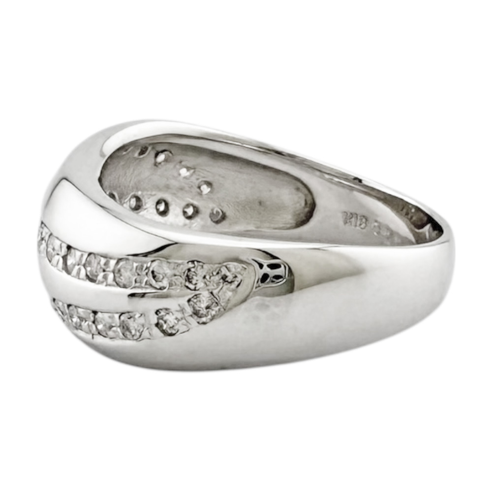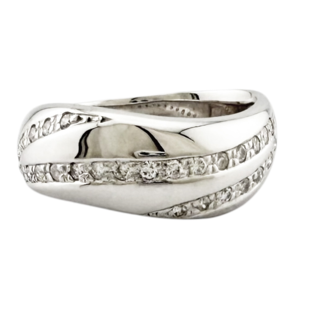 ふっくらとしたフォルムに、ダイヤモンドの煌めきが2本のラインを描くエレガントなリング。滑らかなK18ホワイトゴールドの曲線が、指に優しくフィットします。シンプルながらも存在感があり、どんなシーンでもあなたを美しく輝かせます。 1点限りの商品ですのでお早めにどうぞ。 ※画像上と実物では多少色具合が異なって見える場合もございます。※尚、本品は中古品の為、気にならない程度の小キズがある場合がございます。 当ストアの商品は他のショッピングサイトや全国のリサイクルキングでの同時販売を行っている為、商品欠品によるご落札のキャンセルをさせて頂く場合がございますので予めご了承下さい。 |