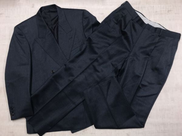 イエーガー ロンドン JAEGER LONDON トラッド オーダーメイド タック入りスラックス ダブル スーツ上下セットアップ メンズ ウール100% 紺