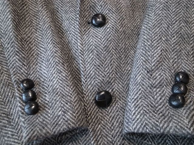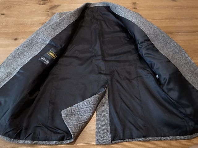 ◆ブランド 「HAGGAR」 アメリカ古着 ●サイズ表記 38S 実寸サイズ S相当 肩幅…41cm(肩先から肩先の間の長さ) 身幅…52cm(両脇を横直線に結んだ長さ) 着丈…72cm(後衿ぐり中央から後身頃裾) 袖丈…60cm(袖付けの肩先から袖先) ※平置き状態での素人採寸ですので、多少の誤差はご了承ください。 ●素材…100%PUREWOOL ツイード素材 秋冬向き ●色…黒×グレー ヘリンボーンストライプツイード ●ポケット… フラップパッチポケット ●裏地…総裏仕立て ●ベント…センターベント ●製造国表記…USA ●状態…使用感は少ない美品です。 ★送料 全国一律 700円 佐川急便 (北海道900円 沖縄その他離島1700円) ※複数ご購入の場合、同梱発送可能です。 |