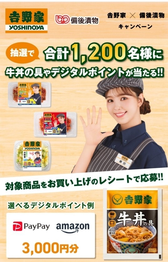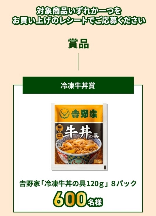 選べるデジタルポイント3000円分or冷凍牛丼の具が合計1200名様にあたる!