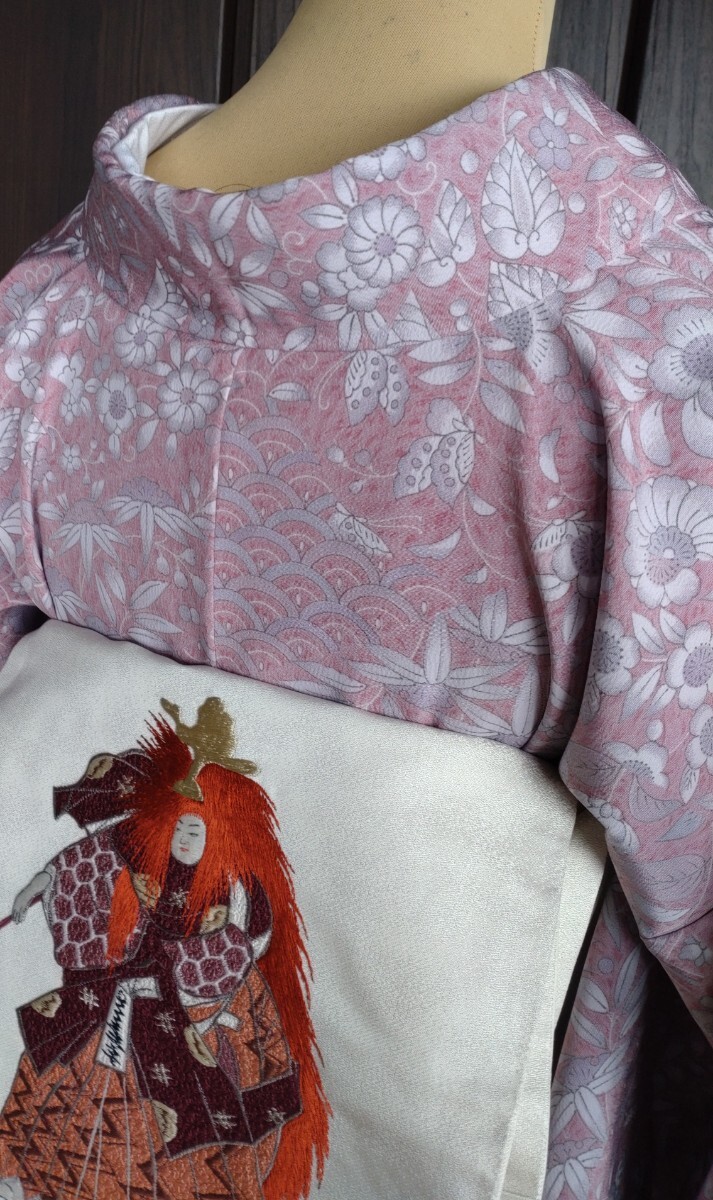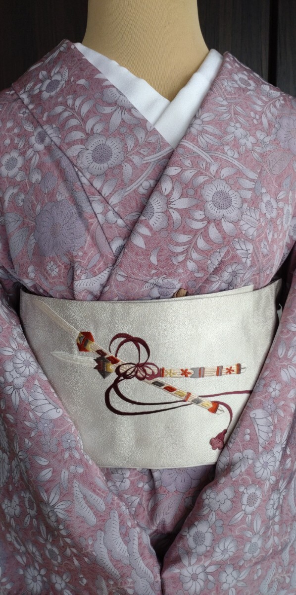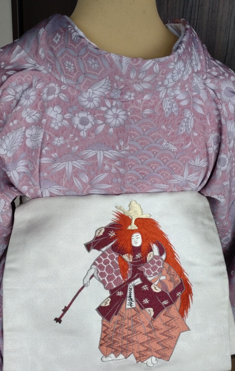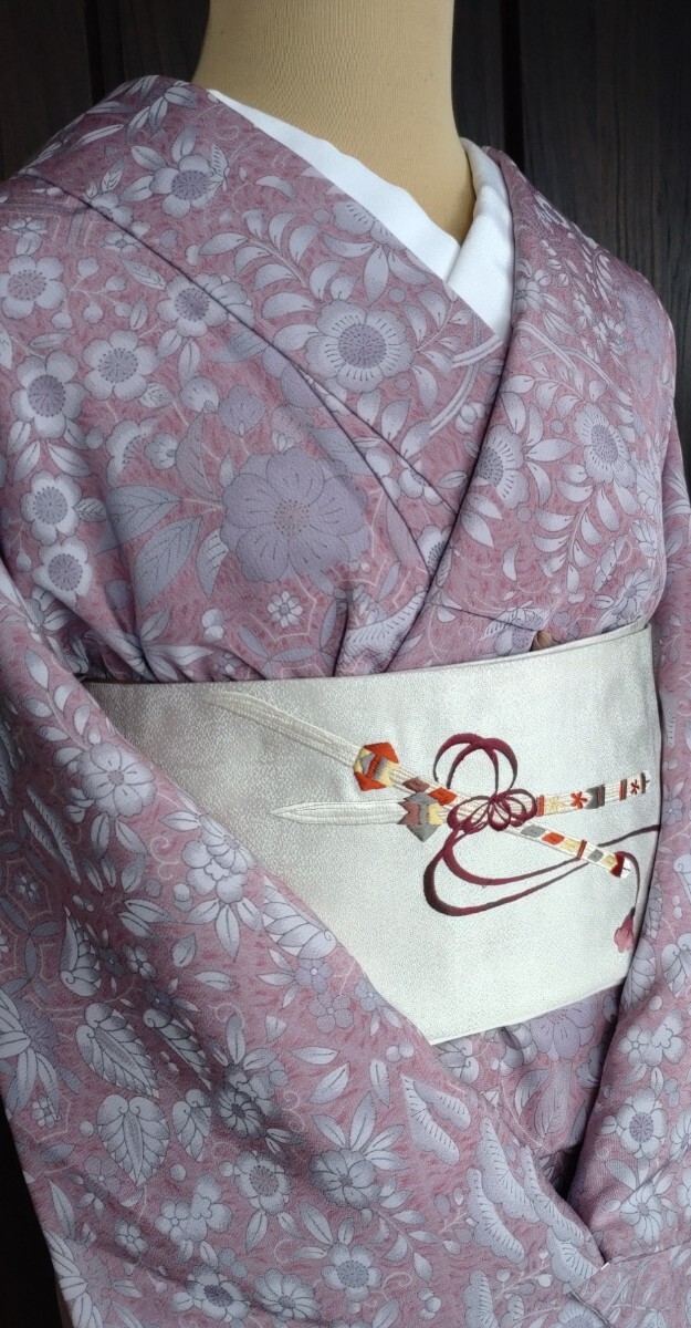 ●●夜桜●●袷お着物●洗えるお着物●辻が花風の小紋★しなやか感●開き名古屋帯★能舞いの豪華な刺繍は感謝としてお付けしてます●No364