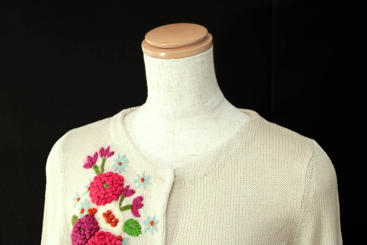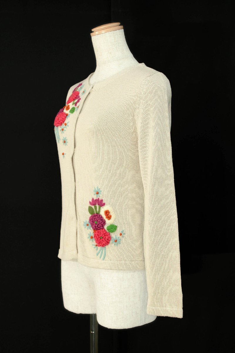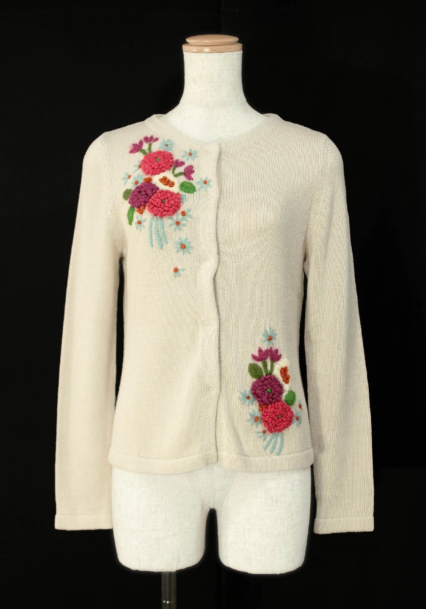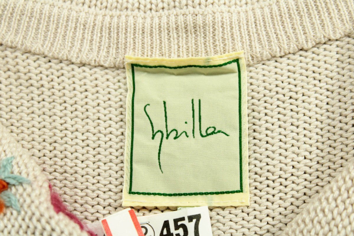☆美品☆sybillaシビラ/お花刺繍長袖ニットカーディガン定価3.3万:M/薄ベージュ系yx488