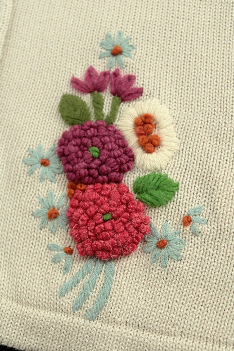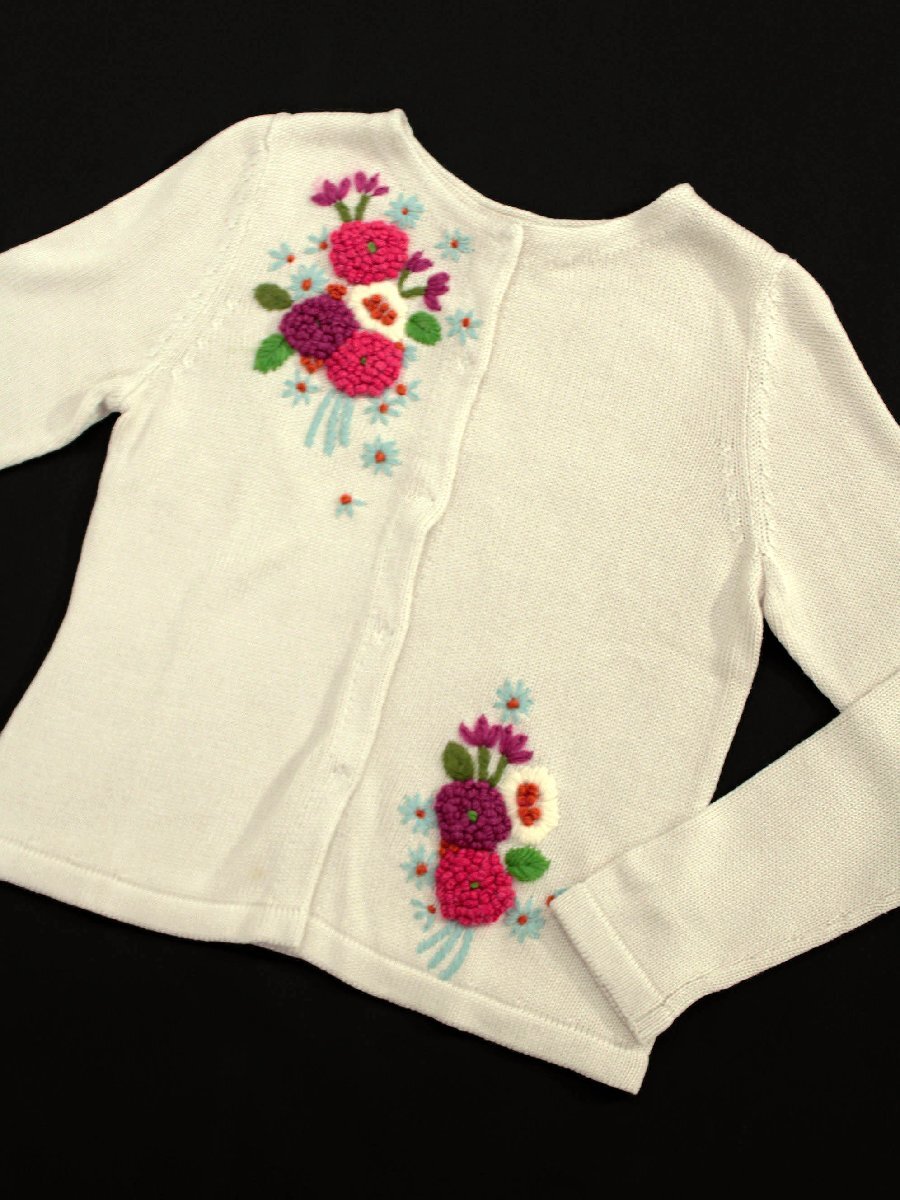 前身頃には立体的なお花の刺繍がほどこされた可愛らしいデザイン。