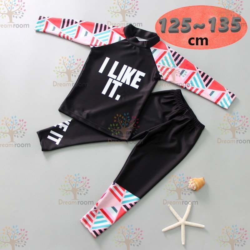 1スタ☆ラッシュガード セパレート水着 上下セットアップ レッド【3XL】125-135cm 子供服 男女 レギンス 長袖 ズボン 日よけ ビキニ 海 プール swi-111