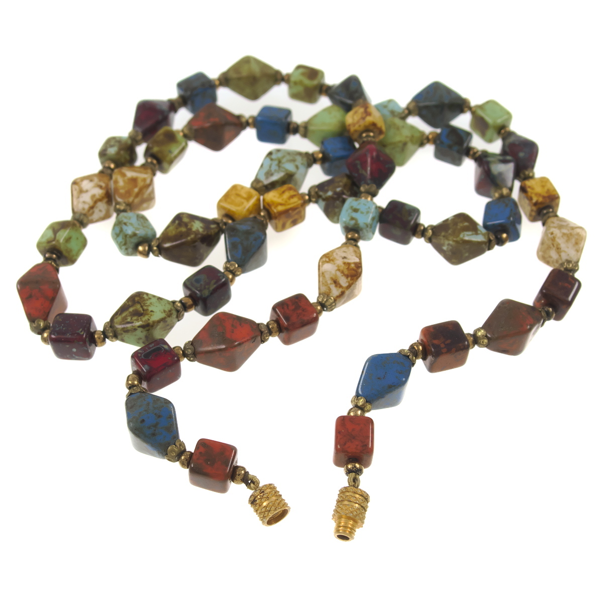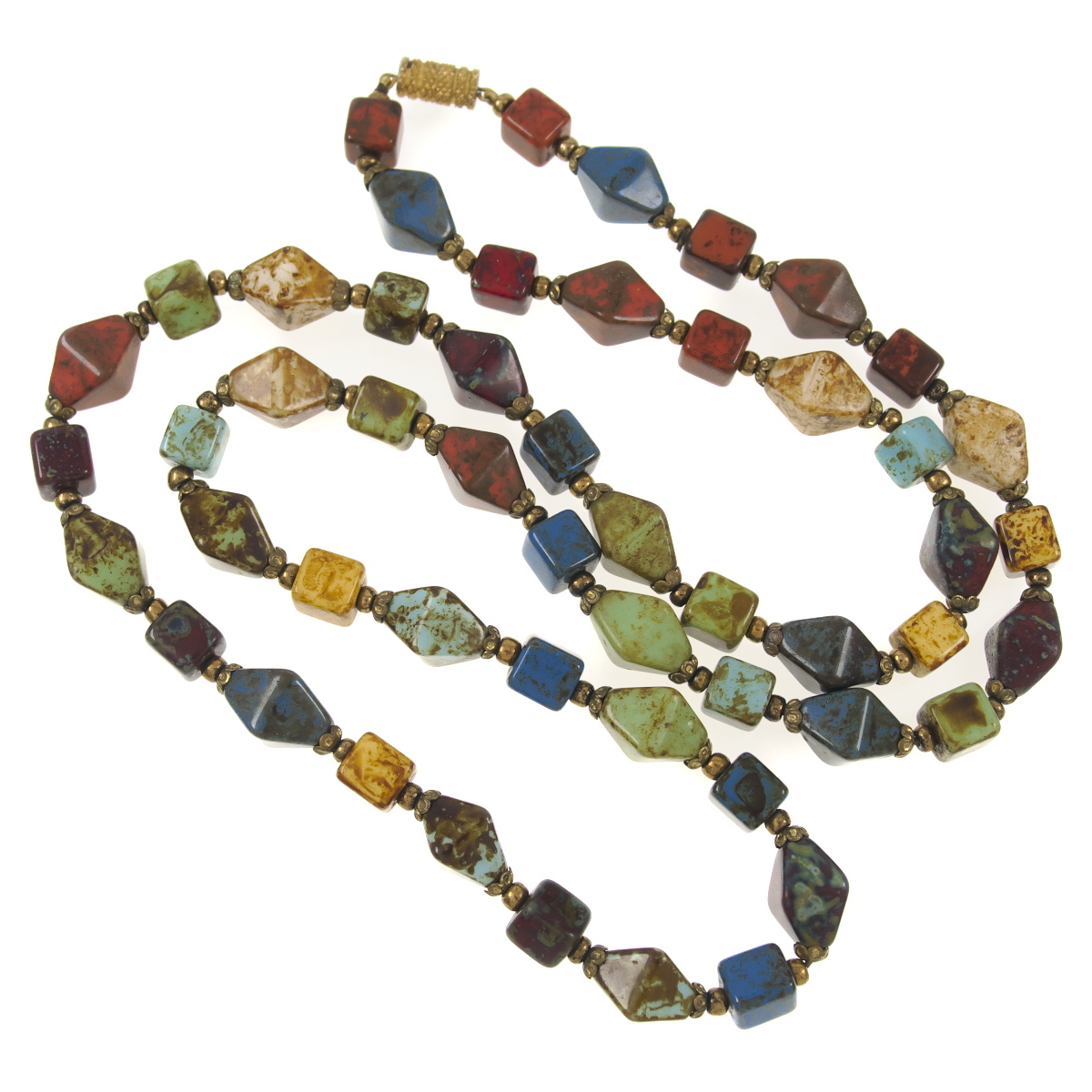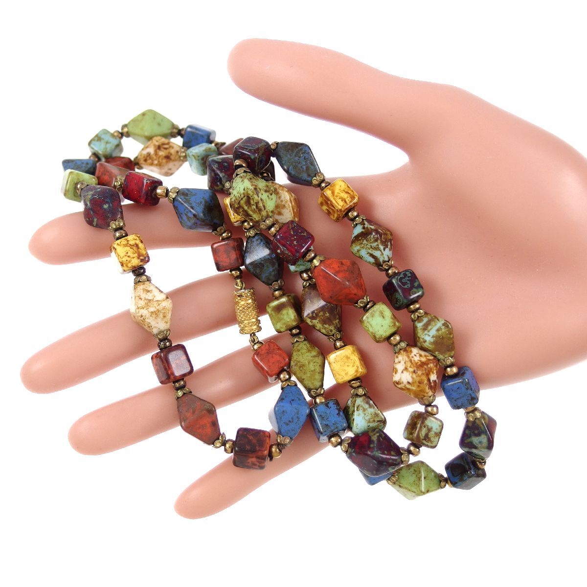 UK4132◆ マルチカラー マーブル 天然石風 ビーズ 色石 カラーストーン ◆ ヴィンテージネックレス ◆