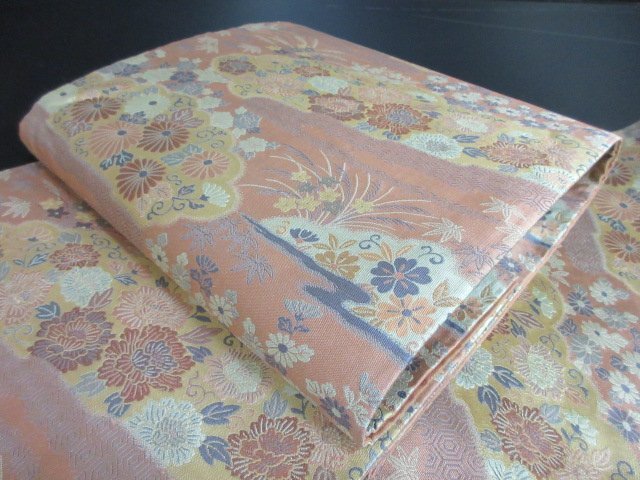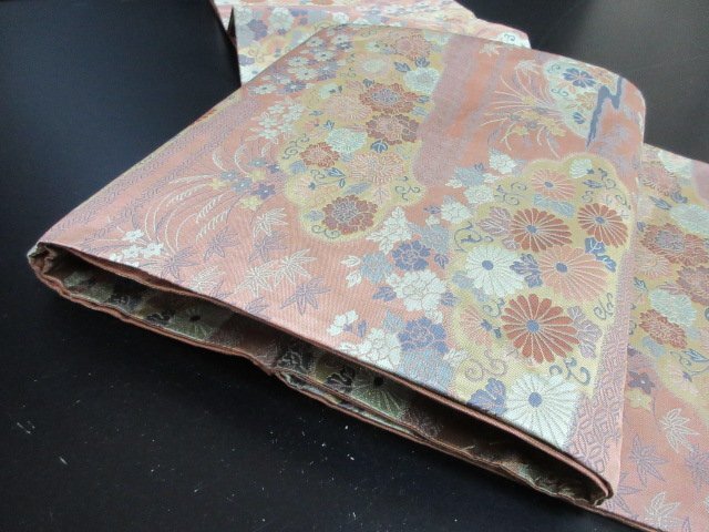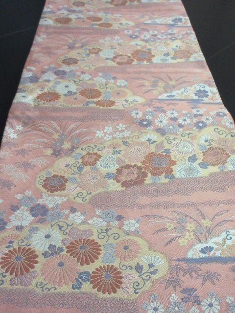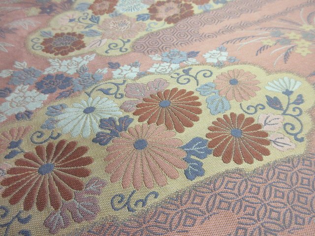 | 商品名 | 1円 良品 袋帯 正絹 和装 和服 雲 花唐草 草花 霞 亀甲 七宝繋ぎ お洒落 全通柄 長さ434cm【夢職】★ |