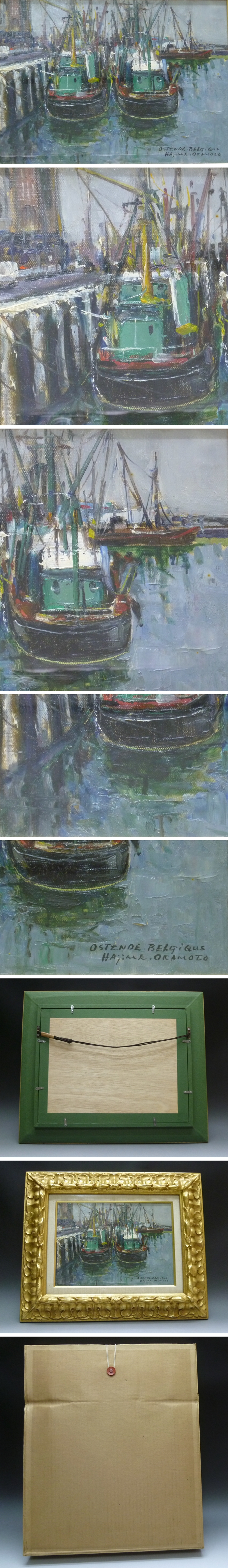 ★※★※【真作】 岡本肇 油彩「ベルギー オスタント」 旧家 初心だし★※★※