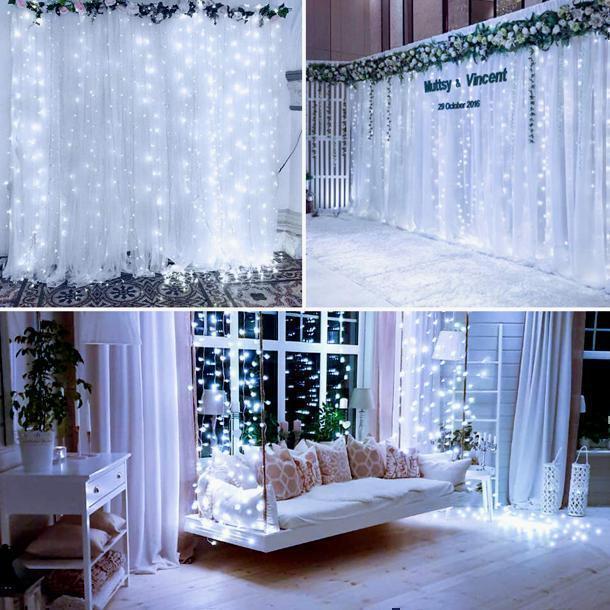 フックで固定したり、広げたり、色んなアレンジが楽しめ、暖かくて幻想的な雰囲気を演出します。