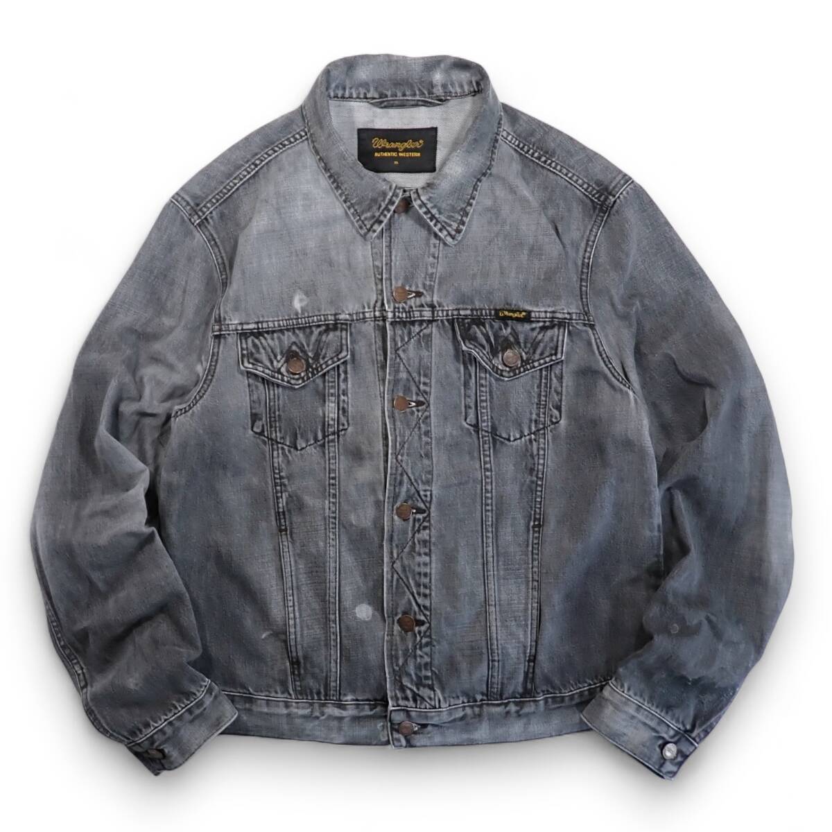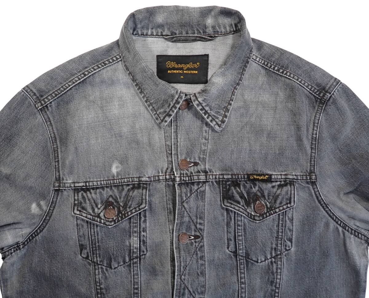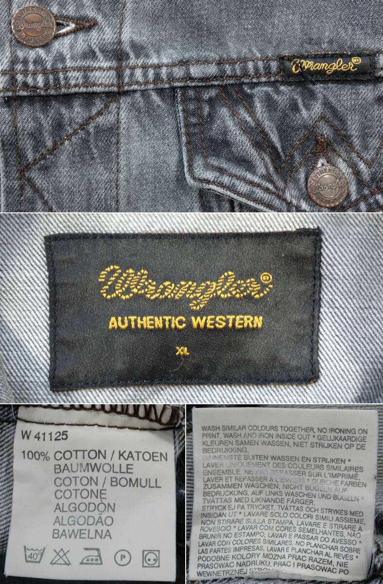7052/Wrangler ブラックデニム ジャケット XL●色合いダメージ雰囲気◎ トラッカー ジージャン Gジャン ラングラー●洗濯プレス済●古着
