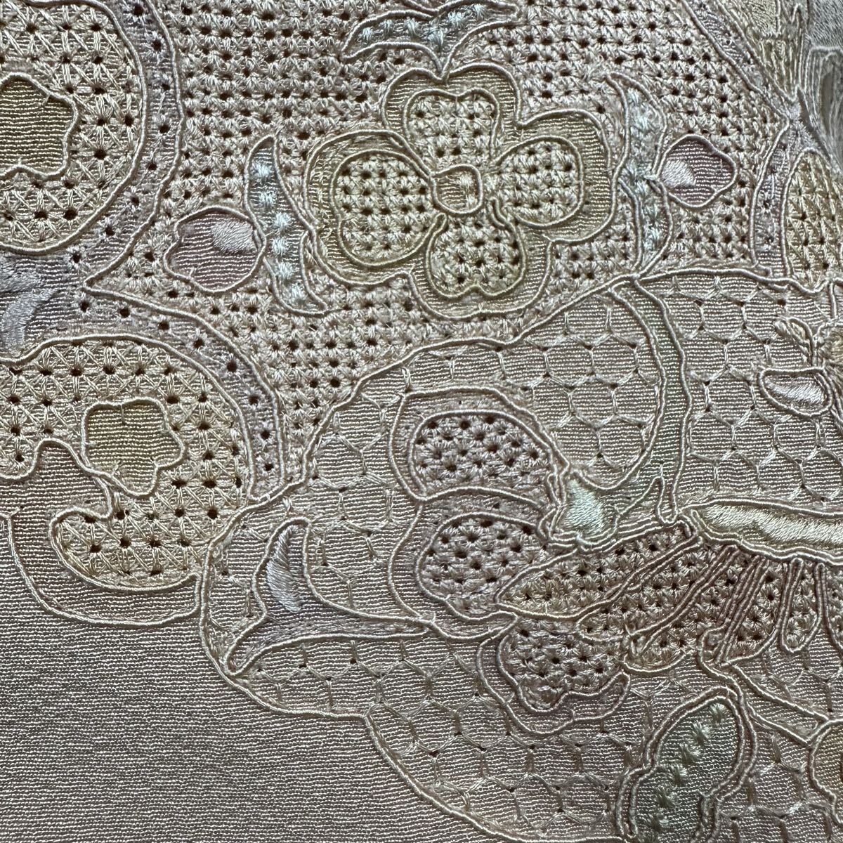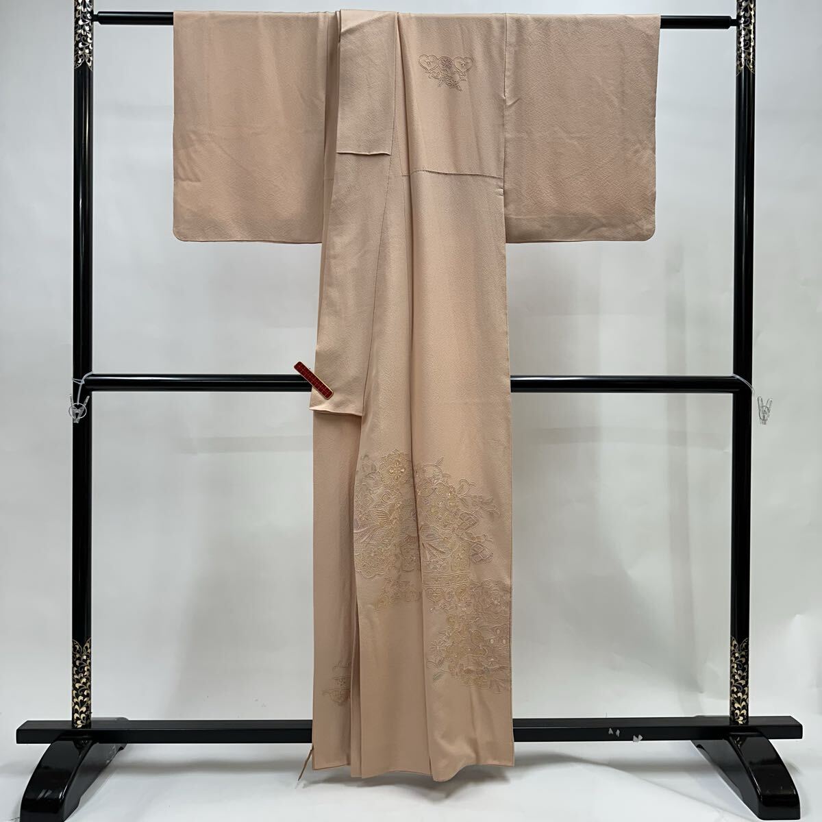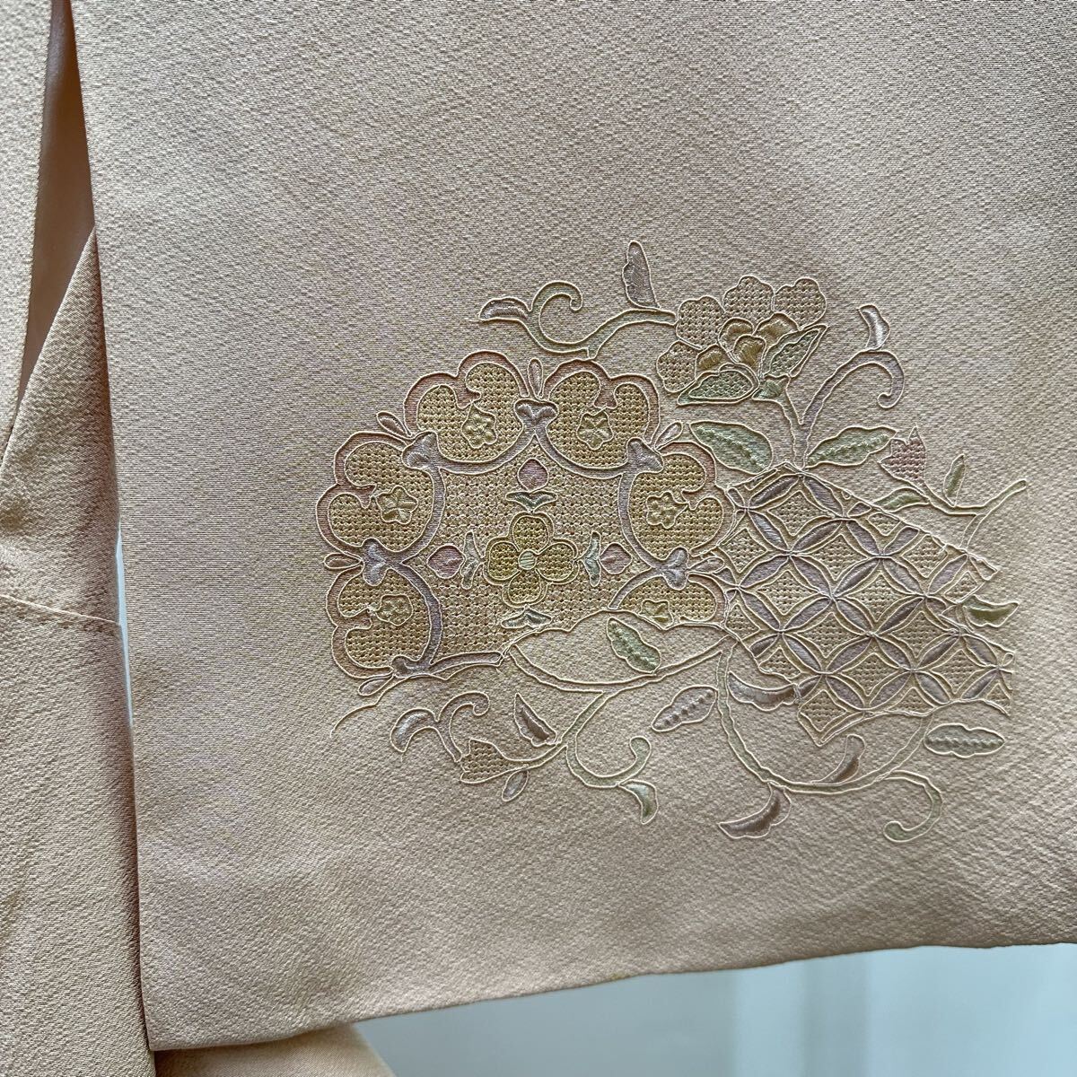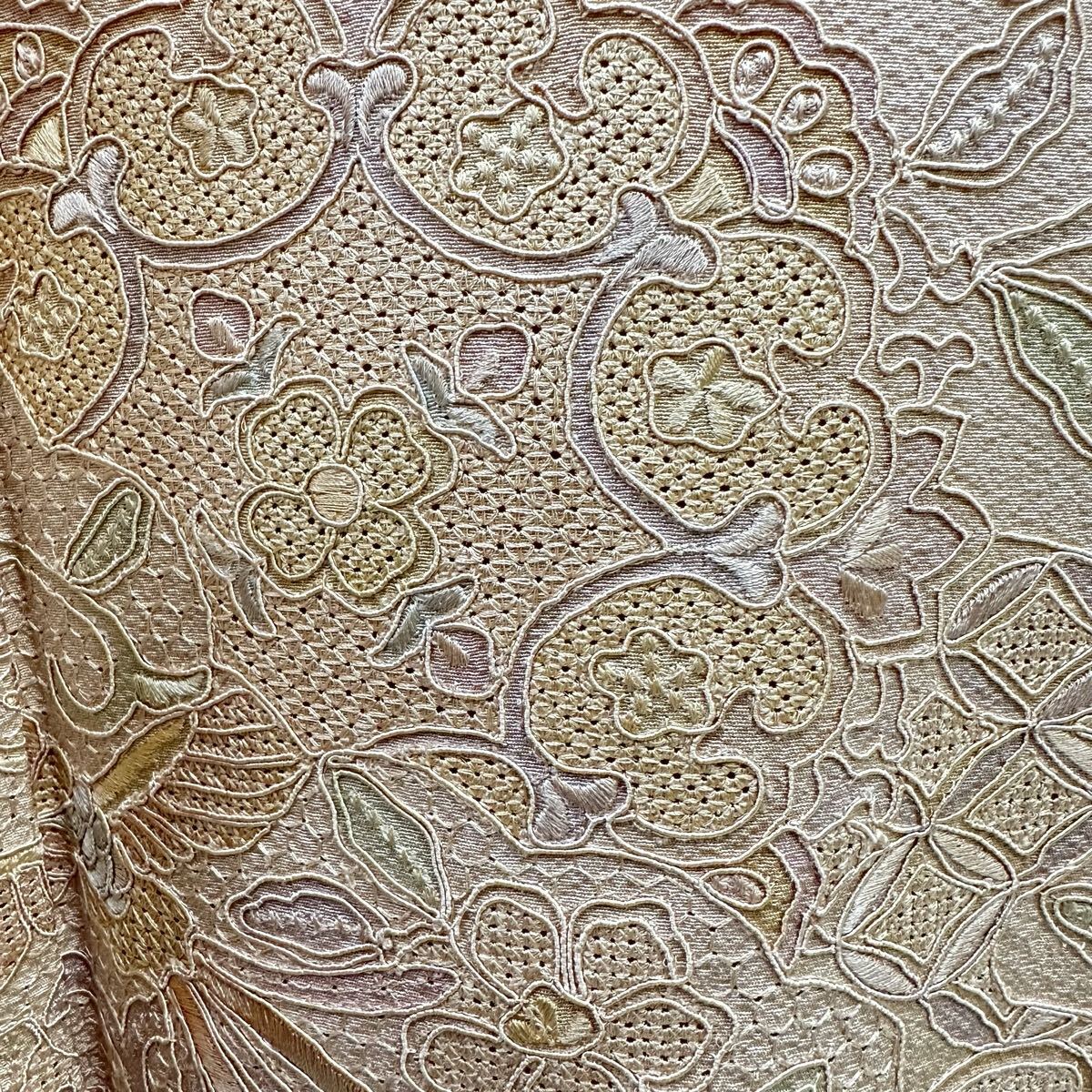 【七福】c868 訪問着 刺繍 正絹 袷仕立て 中国三大刺繍 汕頭刺繍 蘇州刺繍 相良刺繍 一つ紋 着物 逸品 身丈 約156.5cm 裄 約64cm