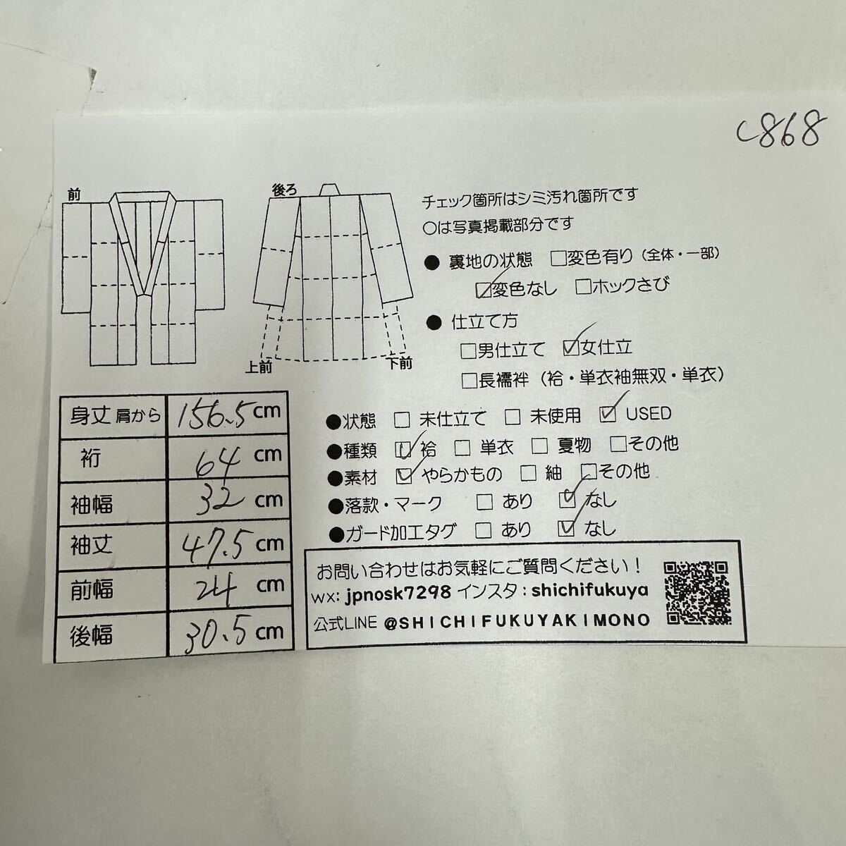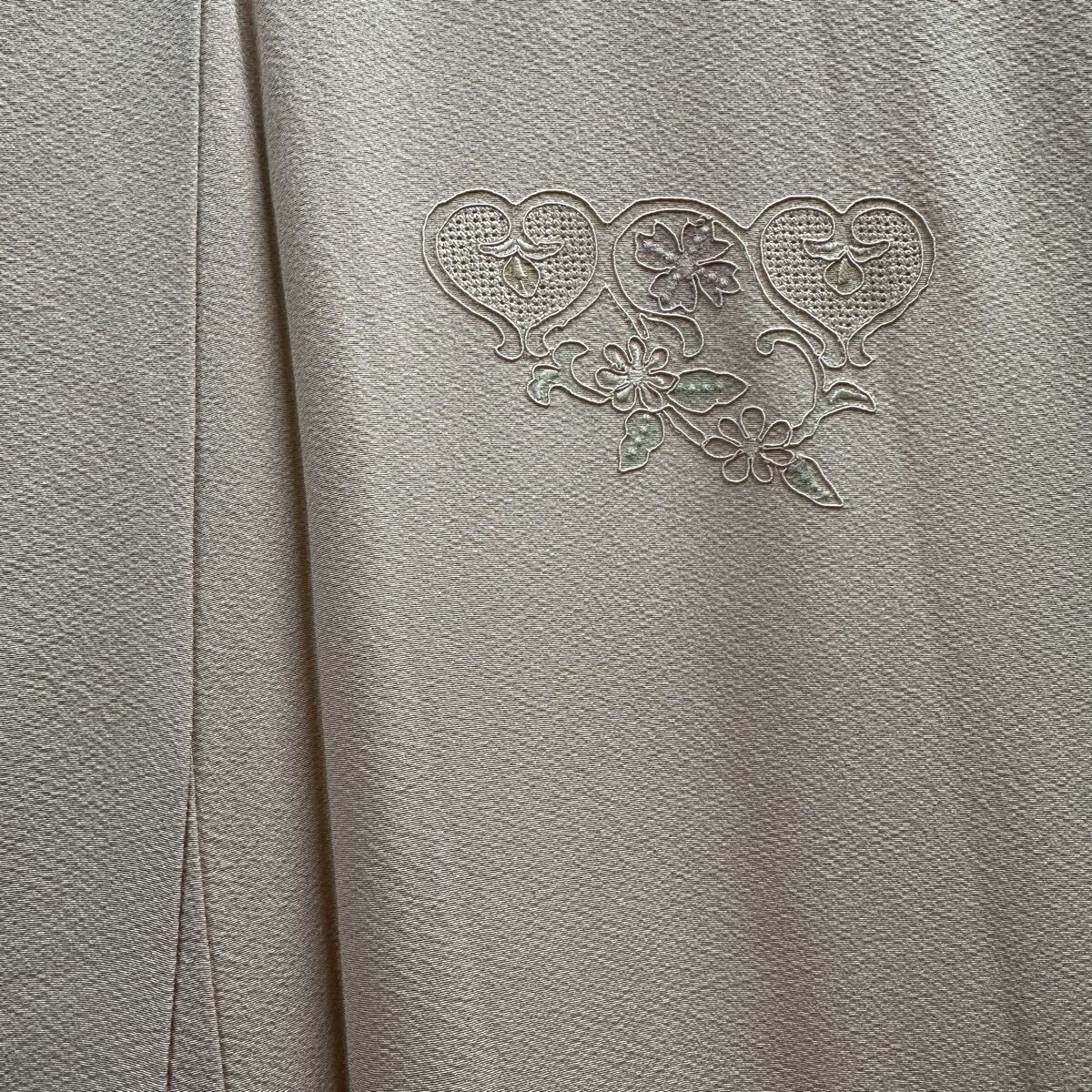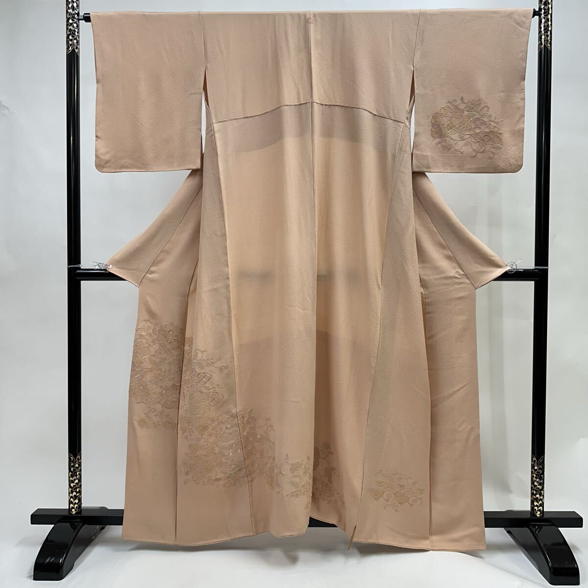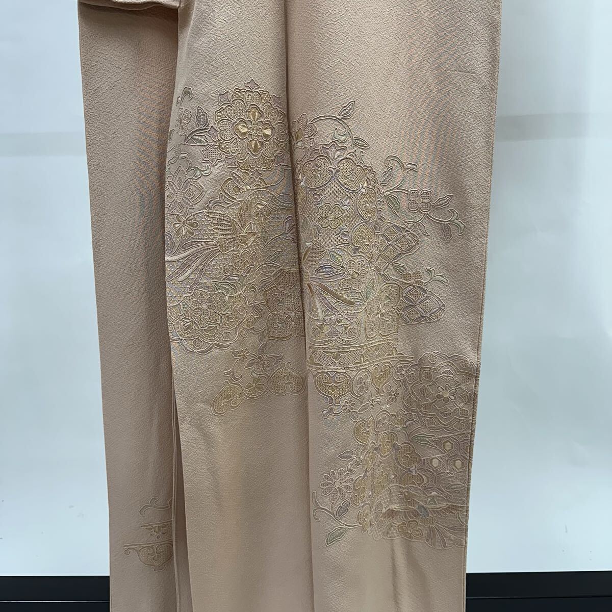 【七福】c868 訪問着 刺繍 正絹 袷仕立て 中国三大刺繍 汕頭刺繍 蘇州刺繍 相良刺繍 一つ紋 着物 逸品 身丈 約156.5cm 裄 約64cm