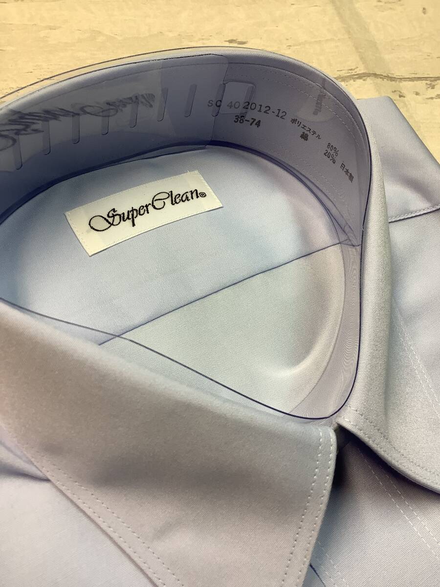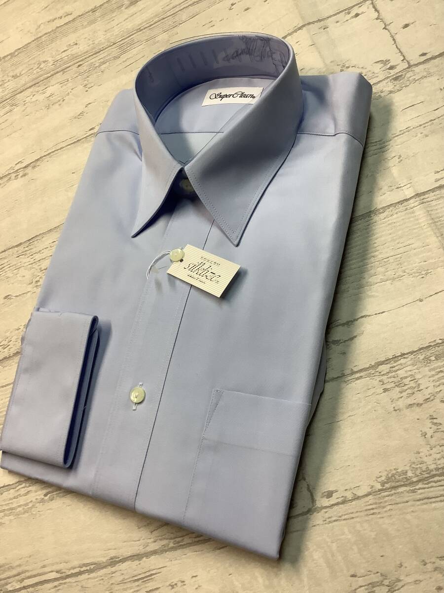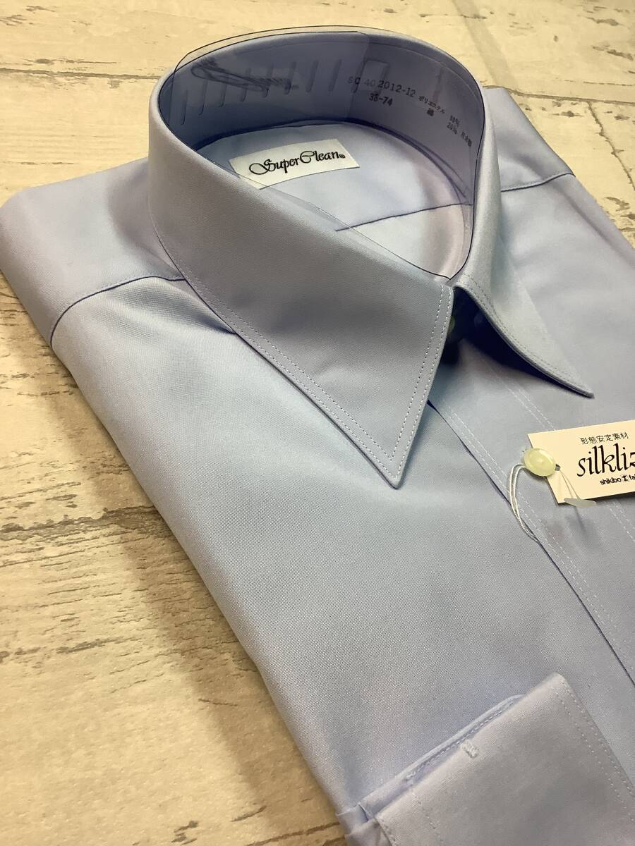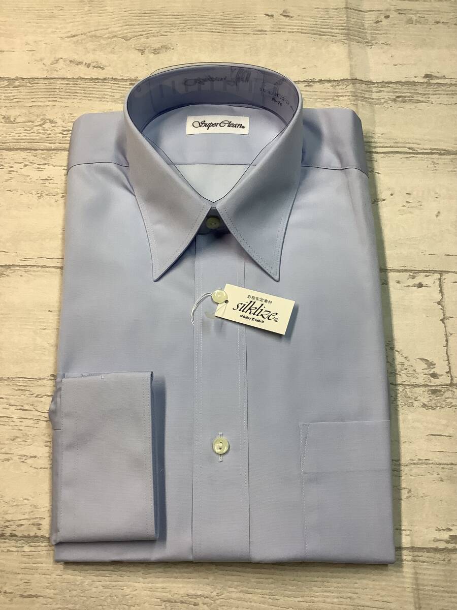 新品未使用 カッターシャツ 38-74 長袖  綿ポリ ★レギュラーカラードレスシャツ ブルー系 形態安定