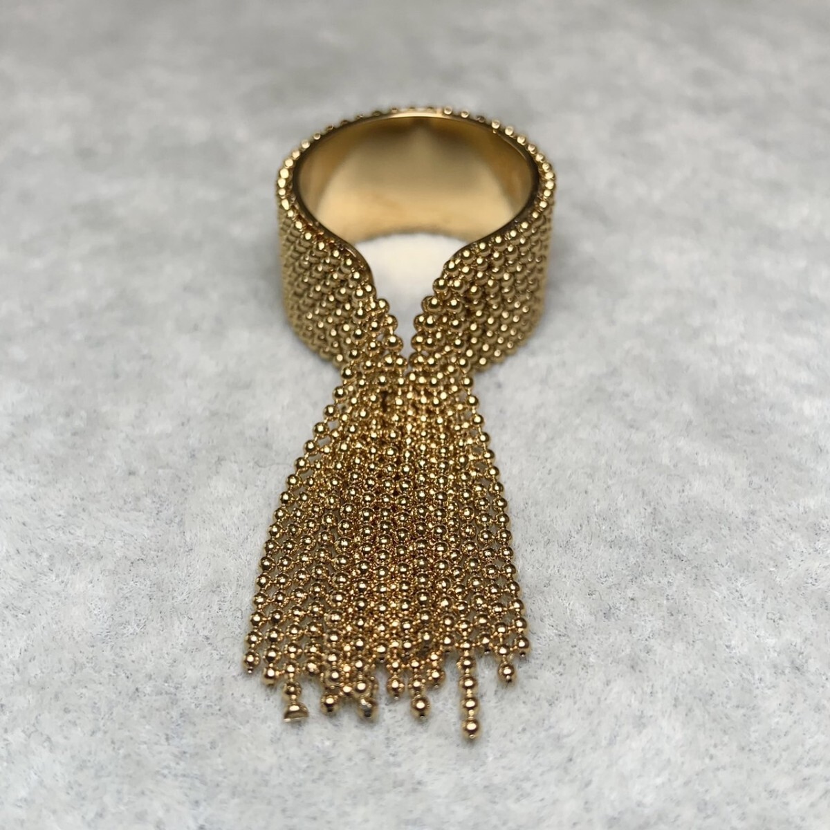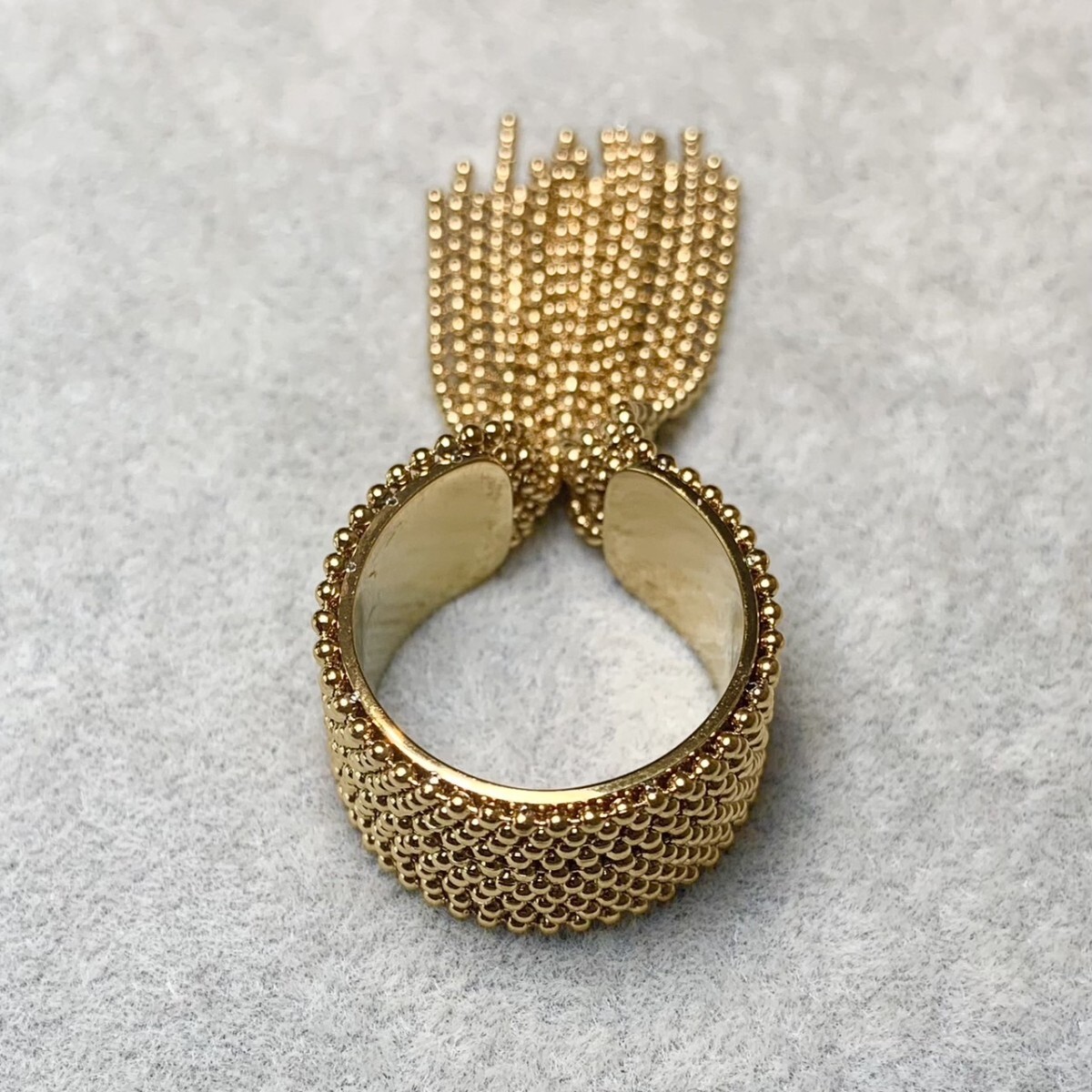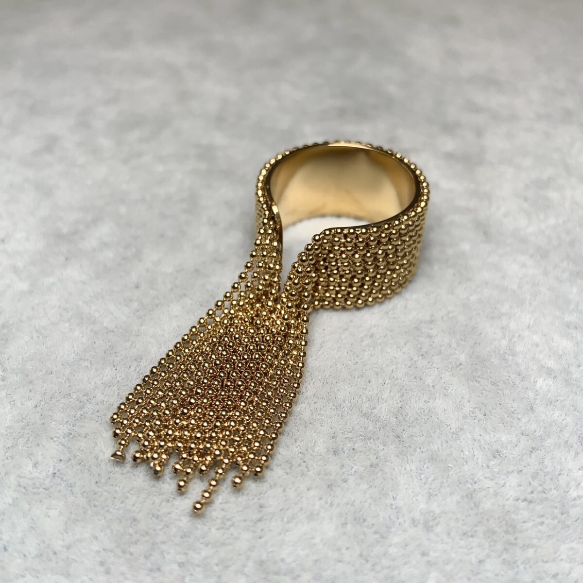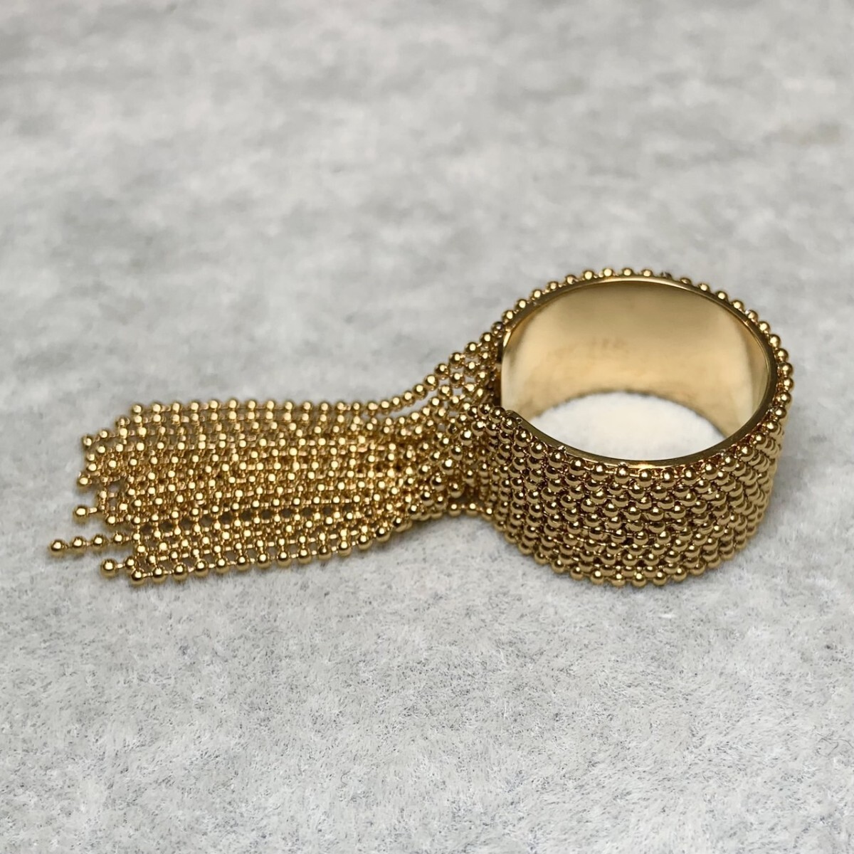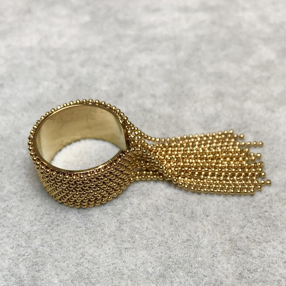*動きのあるタッセルデザインが目を惹くゴールドリング。揺れるたびに高級感漂う華やかな存在感を放ちます。