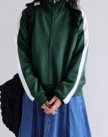 匿名/ゆうパケ送込 antiqua アンティカ 【未使用 タグ付き】ジャージジャケット  グリーン×アイボリー